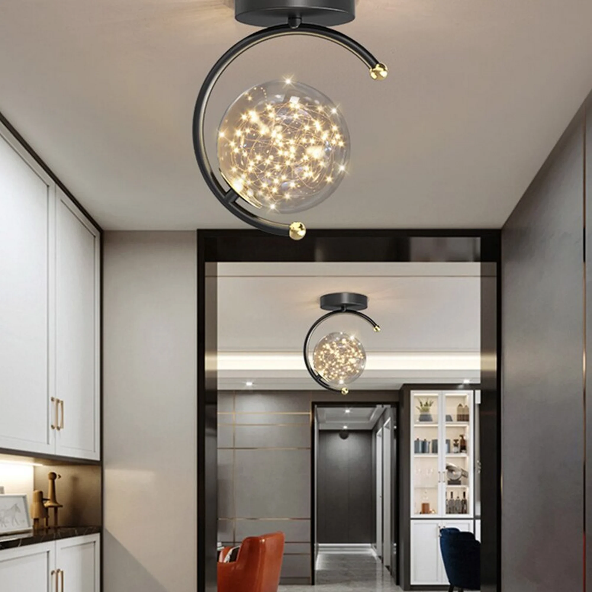 Featuring a beautiful black and gold color scheme, this ceiling lamp is both stylish and elegant. The unique glass ball design adds a touch of charm and whimsy, while the high-quality finishes make it a perfect addition to any modern or traditional home.