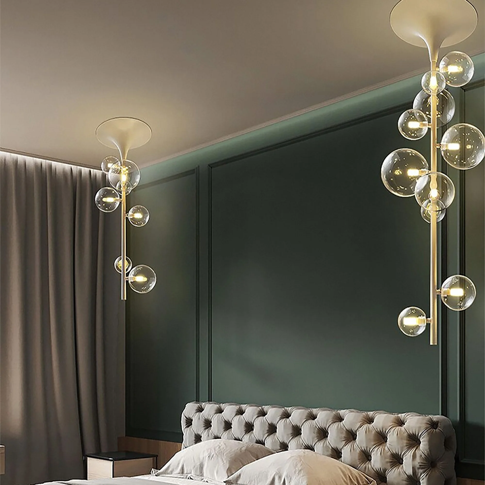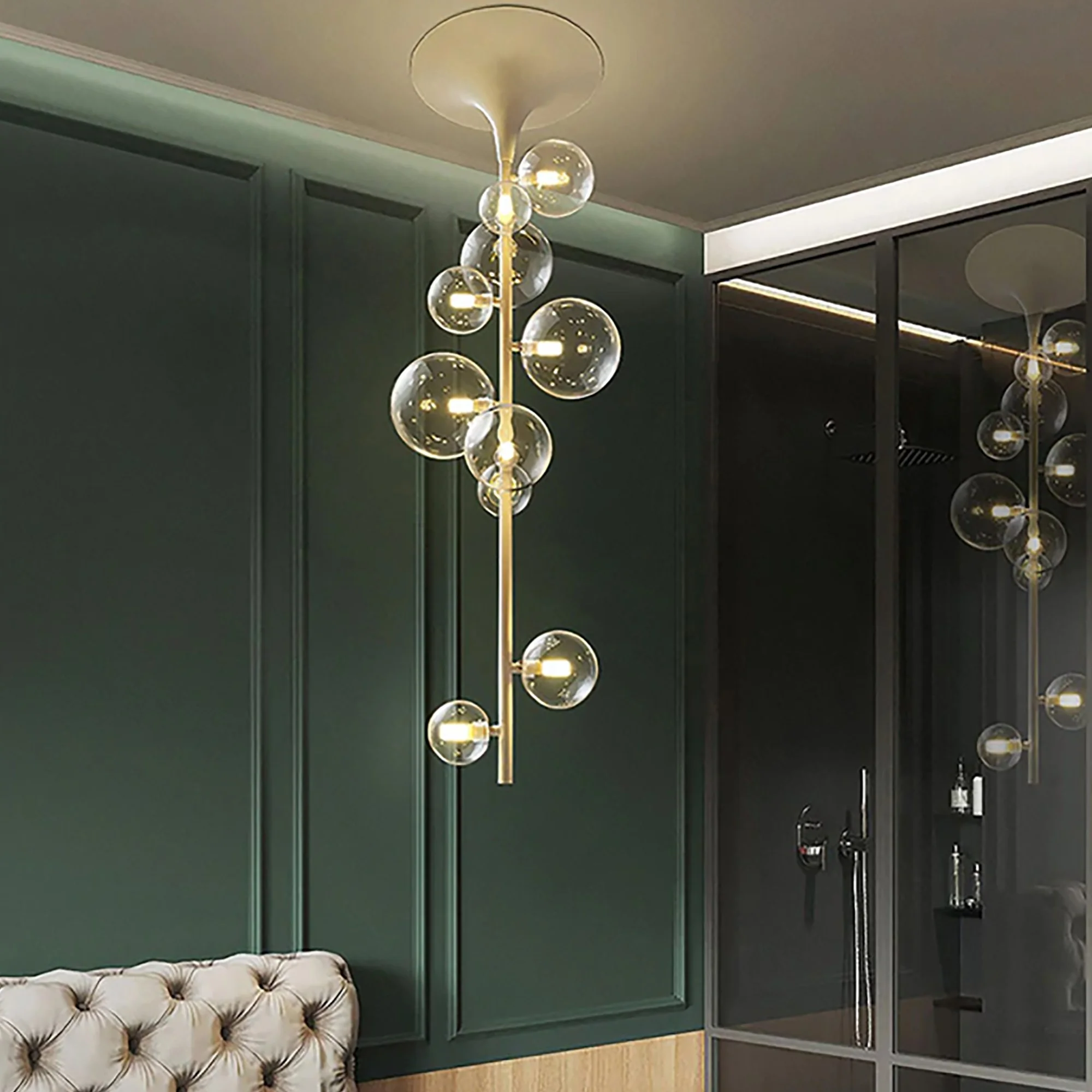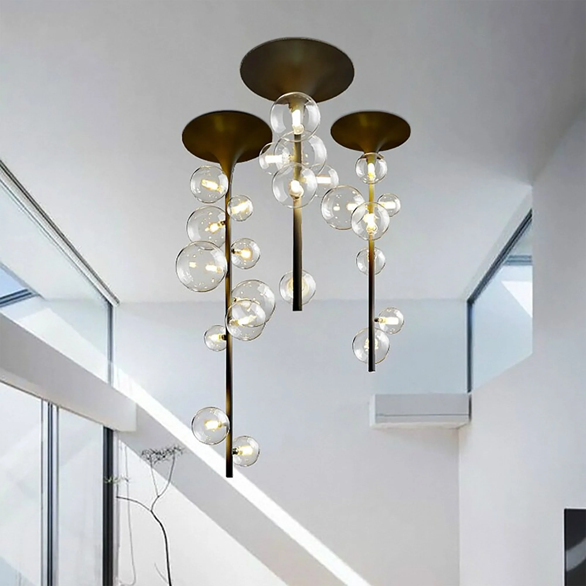 Crafted with precision and passion, the chandelier’s graceful branches extend like an ethereal tree, adorned with exquisite, hand-blown glass bubbles that sparkle like dewdrops in the morning sun. The captivating play of light and shadows created by this breathtaking piece will transform any room into a magical haven.