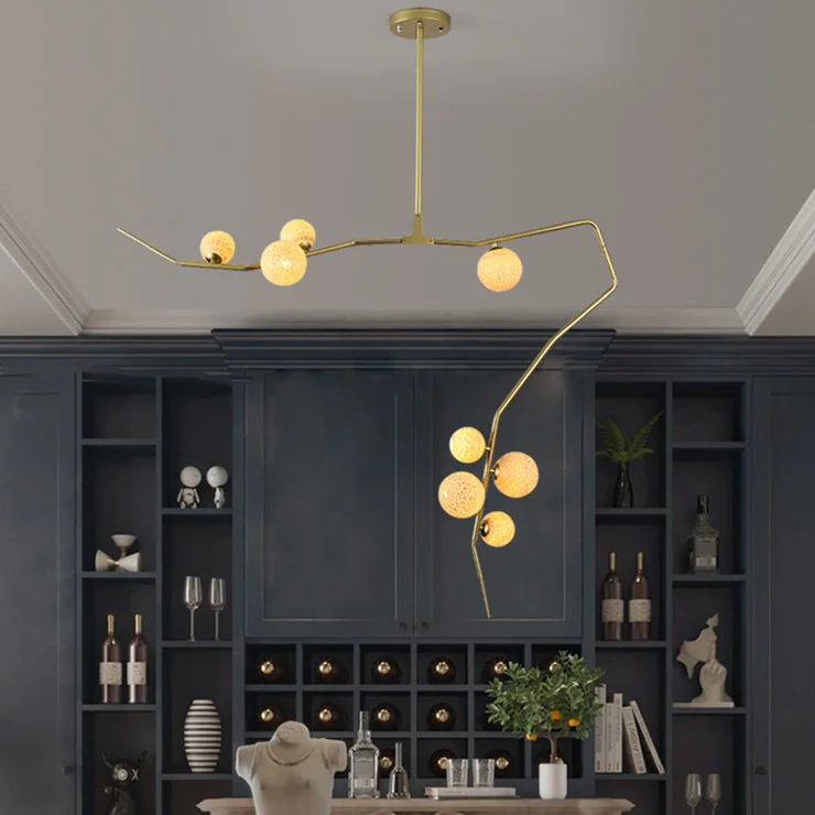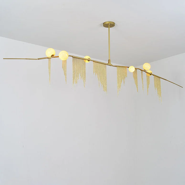 With its cascading fringe design and delicate cherry bomb globes, this chandelier exudes an aura of luxury and opulence. Each detail has been meticulously crafted, from the hand-blown glass globes to the intricate fringe arrangement, ensuring a truly unique and breathtaking centerpiece.
