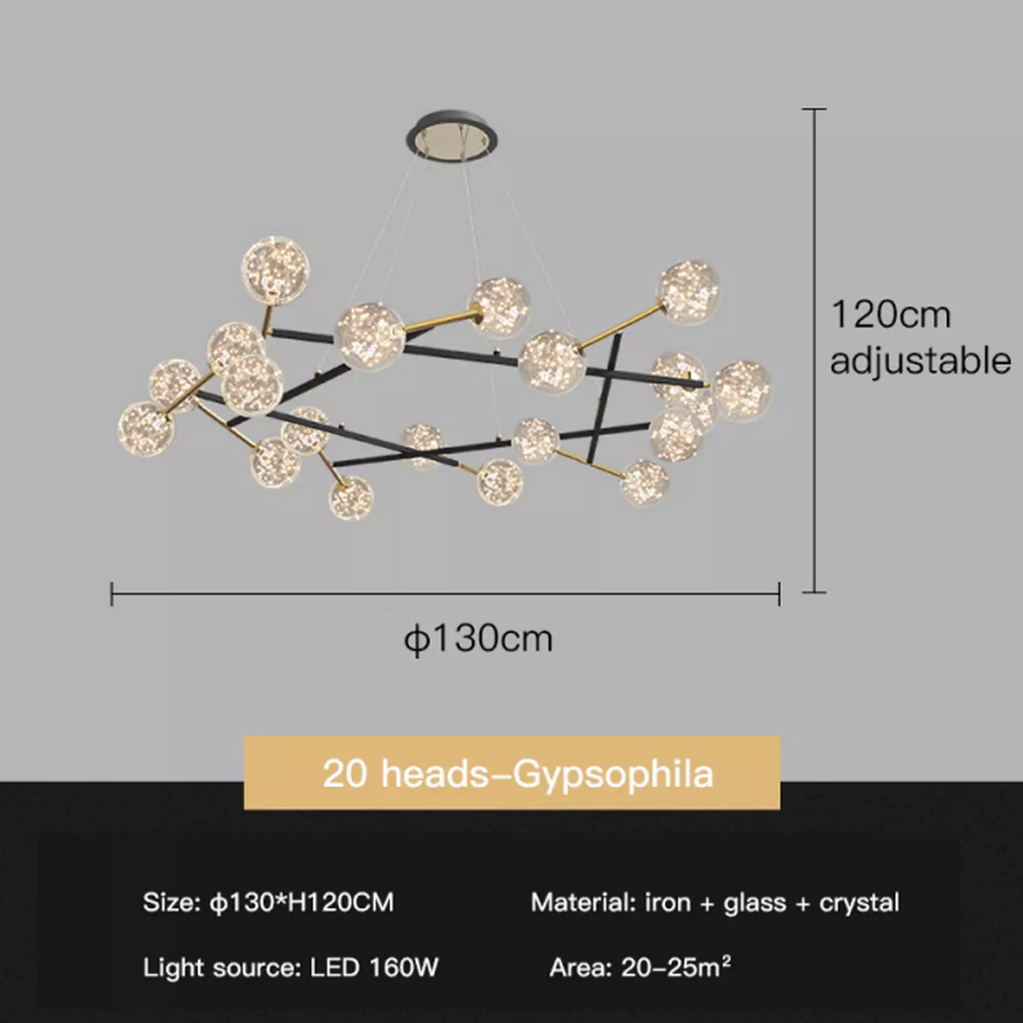 Crafted with meticulous artistry, delicate gypsophila-inspired bubbles cascade gracefully, evoking an ambiance of delicate charm and whimsy. As light gracefully dances through each bubble, it scatters radiant hues, casting a celestial spell upon your space. The ethereal glow emanating from this exquisite chandelier will transport you to a realm where dreams seamlessly blend with reality.