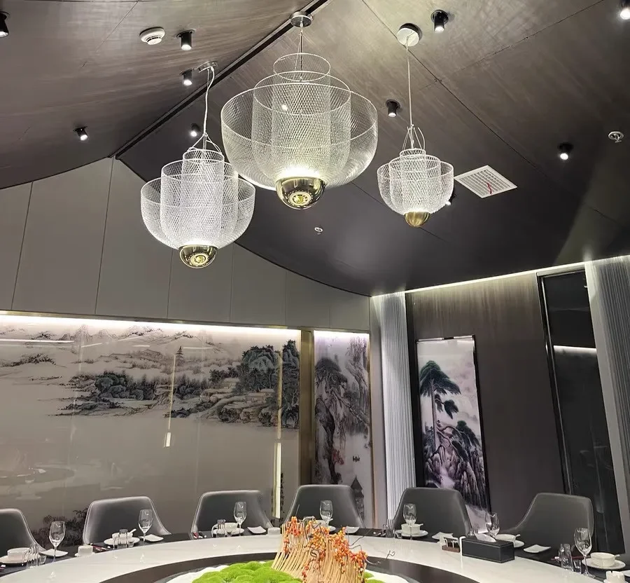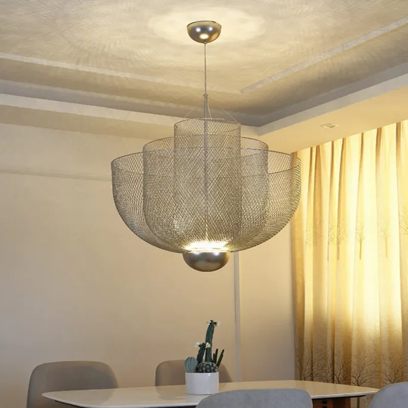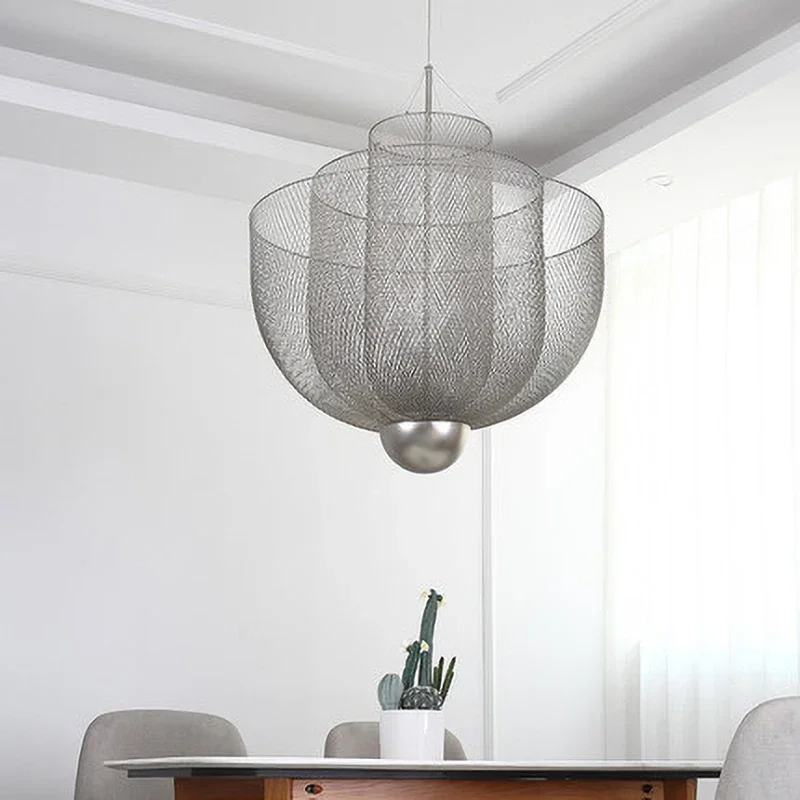 Perfect for dining rooms, entryways, or contemporary living spaces, this chandelier is a statement piece that adds depth and texture to any room. Its intricate mesh design adds a sense of sophistication, making it a perfect fit for both minimalist and industrial-style interiors.