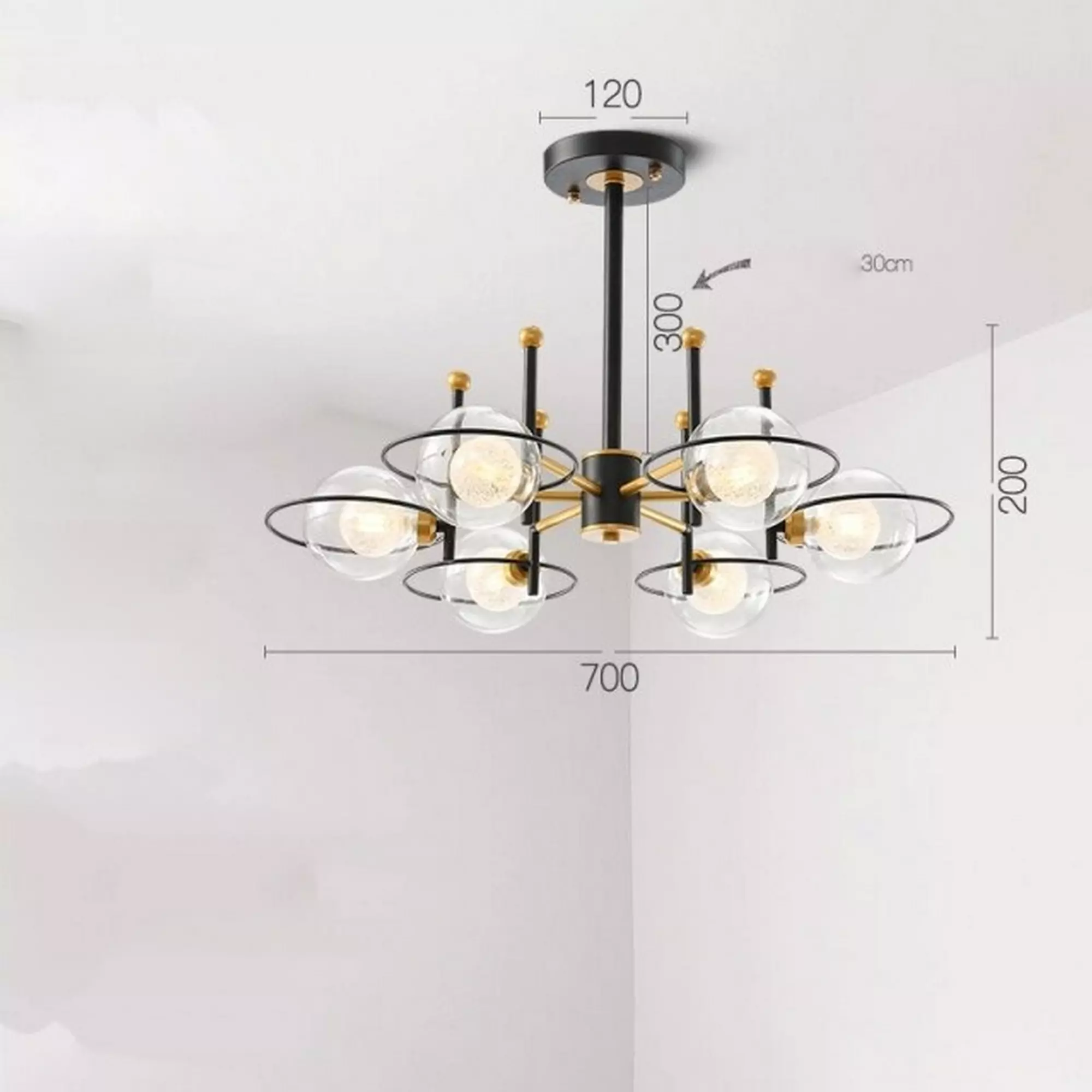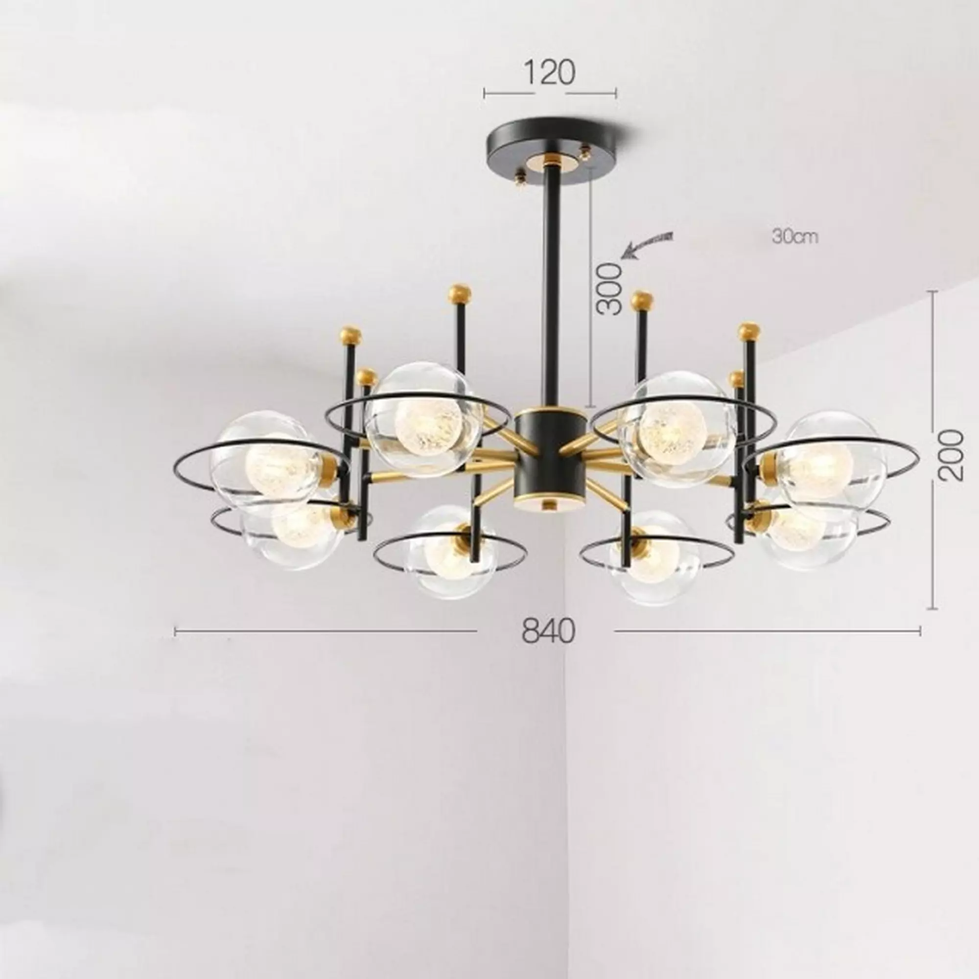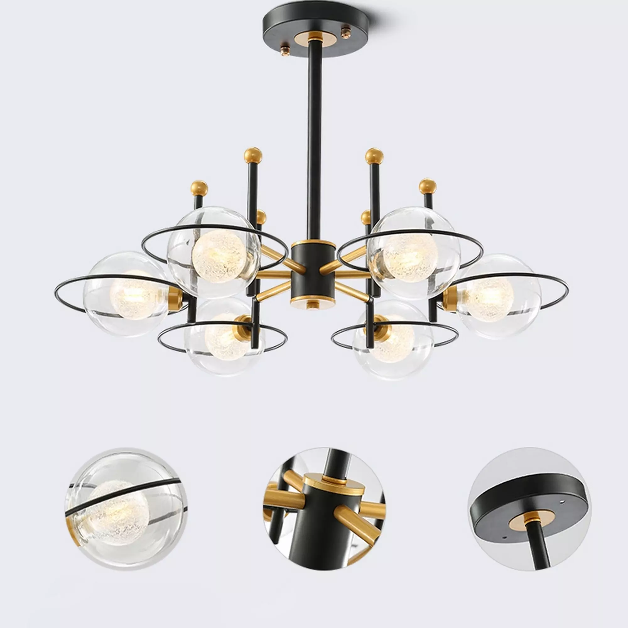The transparent glass balls beautifully capture and reflect light, casting a soft and mesmerizing glow that creates a captivating ambiance. Whether installed in a dining area, living room, or foyer, this chandelier becomes a striking focal point that draws the eye and sparks conversation.