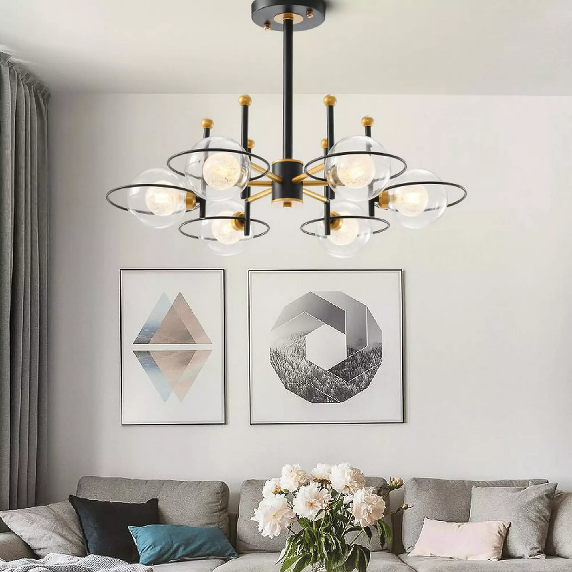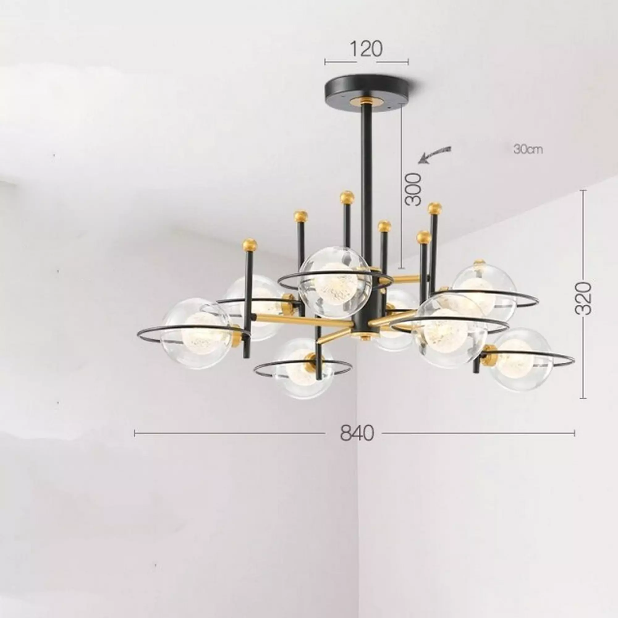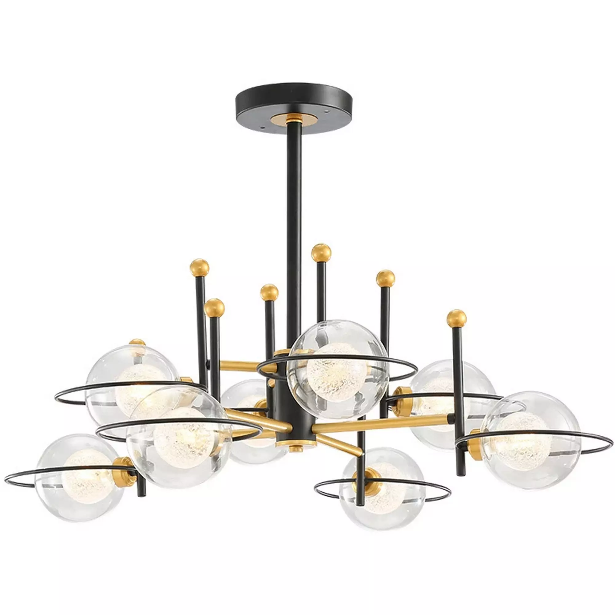 The transparent glass balls beautifully capture and reflect light, casting a soft and mesmerizing glow that creates a captivating ambiance. Whether installed in a dining area, living room, or foyer, this chandelier becomes a striking focal point that draws the eye and sparks conversation.
