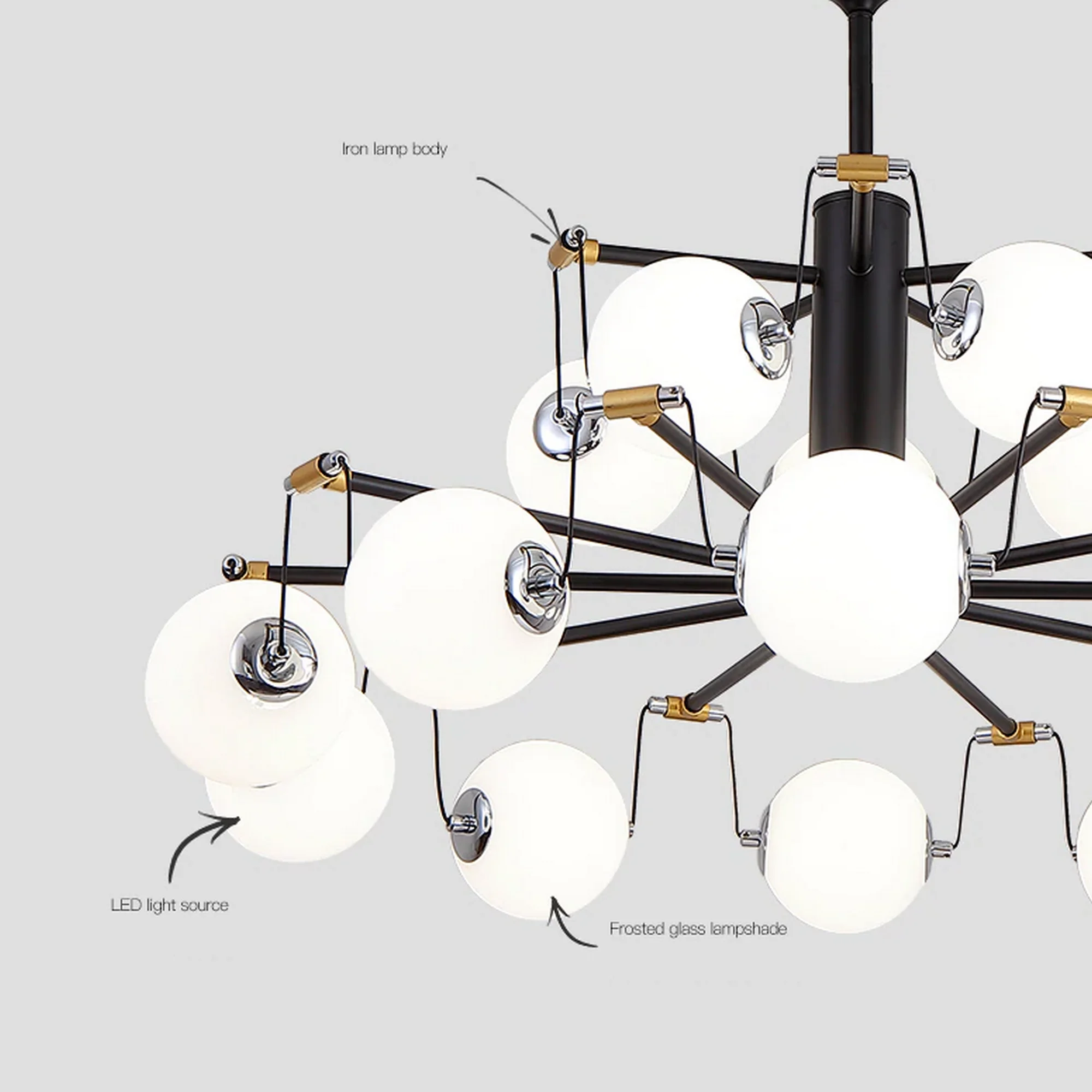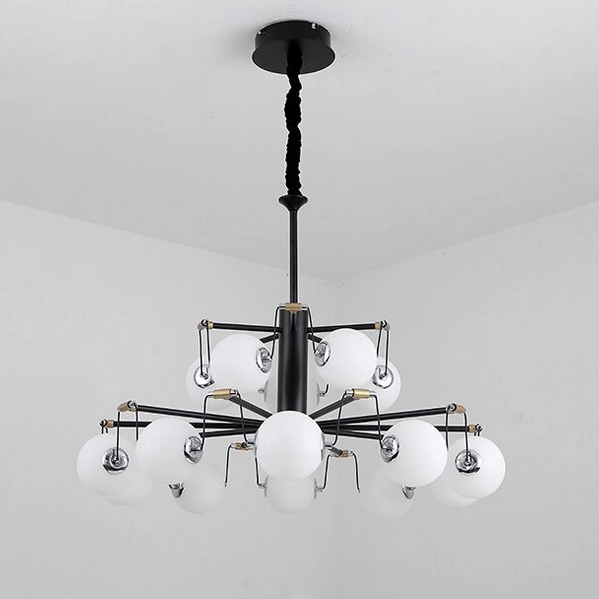 Perfect for use in living rooms, dining rooms, and bedrooms, the Galaxy Hanging Sphere Chandelier is the ultimate way to elevate your home decor. Its timeless style and impeccable craftsmanship make it a must-have for any design-savvy homeowner.