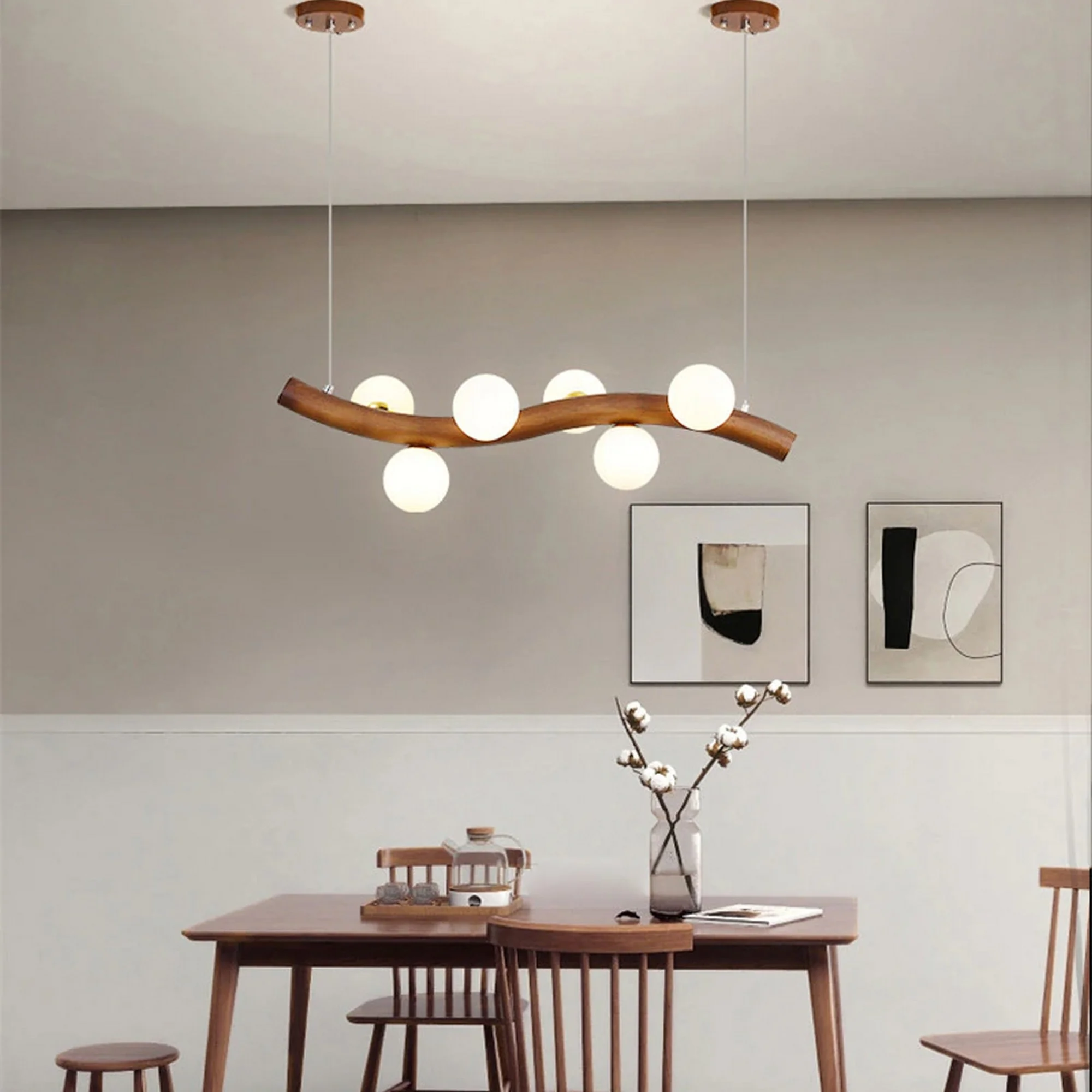 Crafted with impeccable attention to detail, the Nordic Art Decoration Wood Chandelier features a minimalist wooden frame adorned with geometric shapes and sleek contours. The natural grain of the wood adds a touch of organic beauty, enhancing the overall aesthetic appeal.
