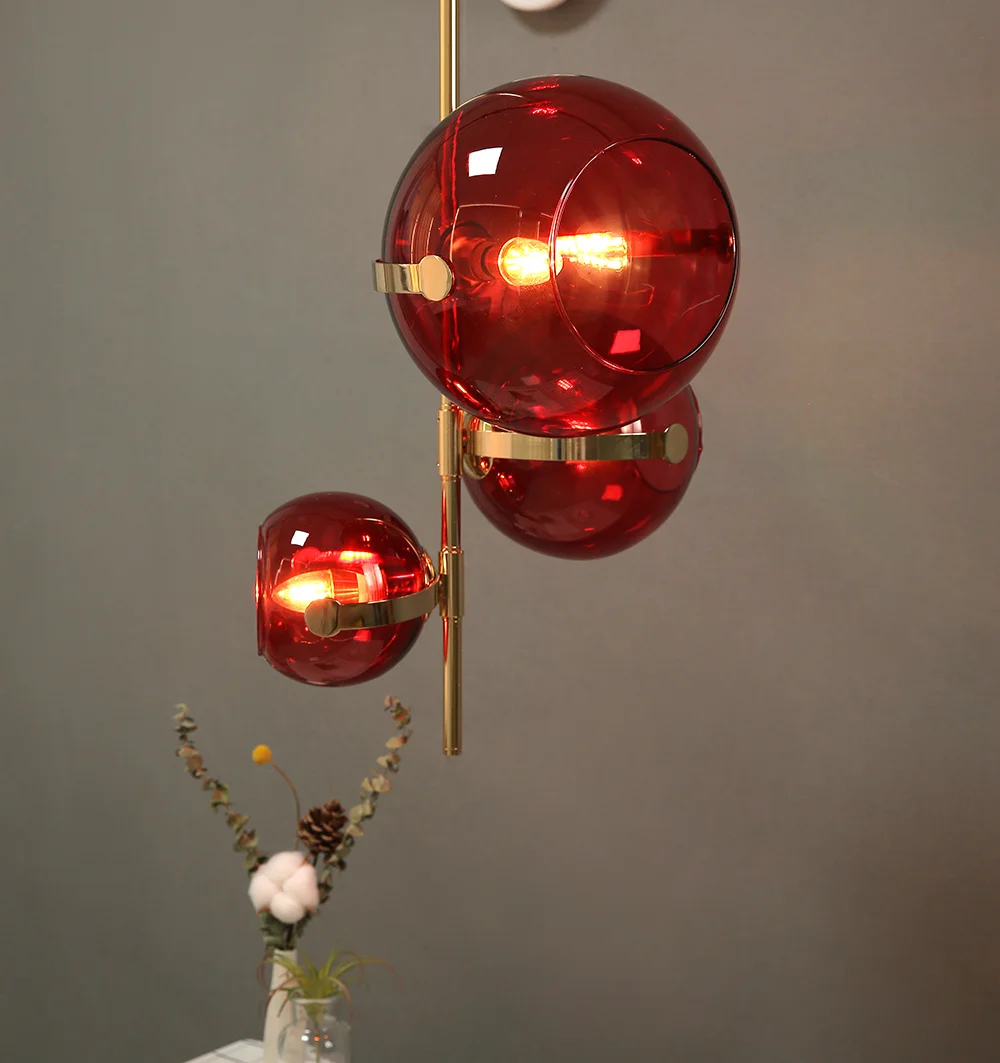Introducing the Creative Red Glass Hanging Light, a brilliant meld of artistic flair and modern design sensibilities. This hanging light, with its radiant hue and impeccable craftsmanship, promises to be a beacon of vibrancy, infusing spaces with warmth and avant-garde elegance.