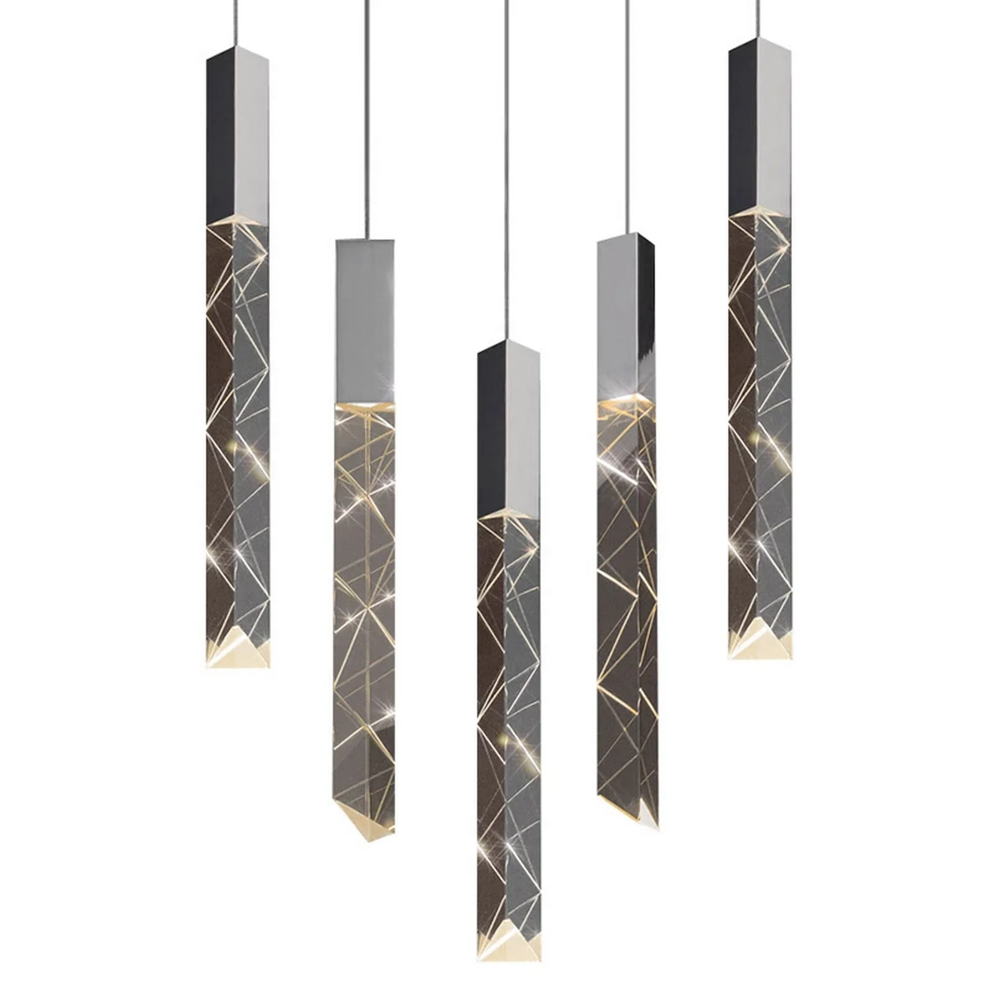 Introducing the Axis LED Square Multi-Light Pendant! This ultra-sleek and modern light is perfect for adding a touch of drama to any space. Defined by its triangular Crystal prisms and etched geometric textures, this light is sure to make a statement.
