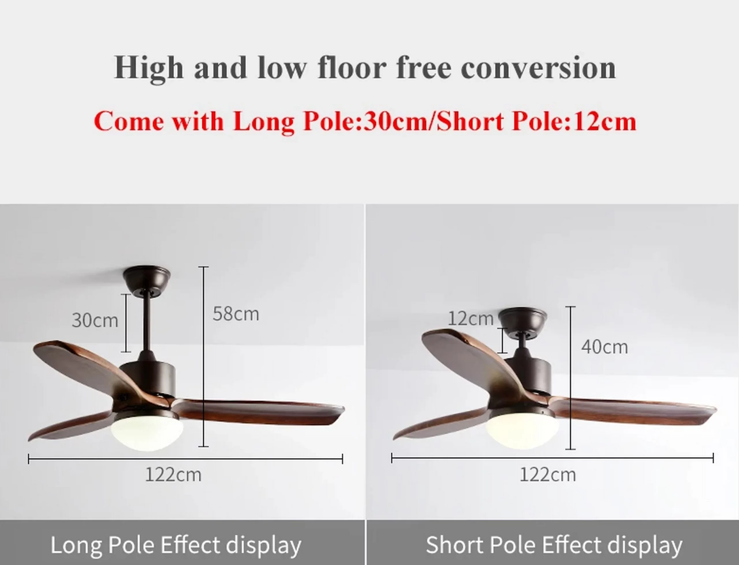 So why settle for an ordinary ceiling fan light when you can elevate your design with the Wooden 3 Blades LED Ceiling Fan Light? With its sleek and modern design, powerful motor, and energy-efficient LED lights, this ceiling fan light is the perfect addition to any home. Order yours today and experience the difference for yourself!