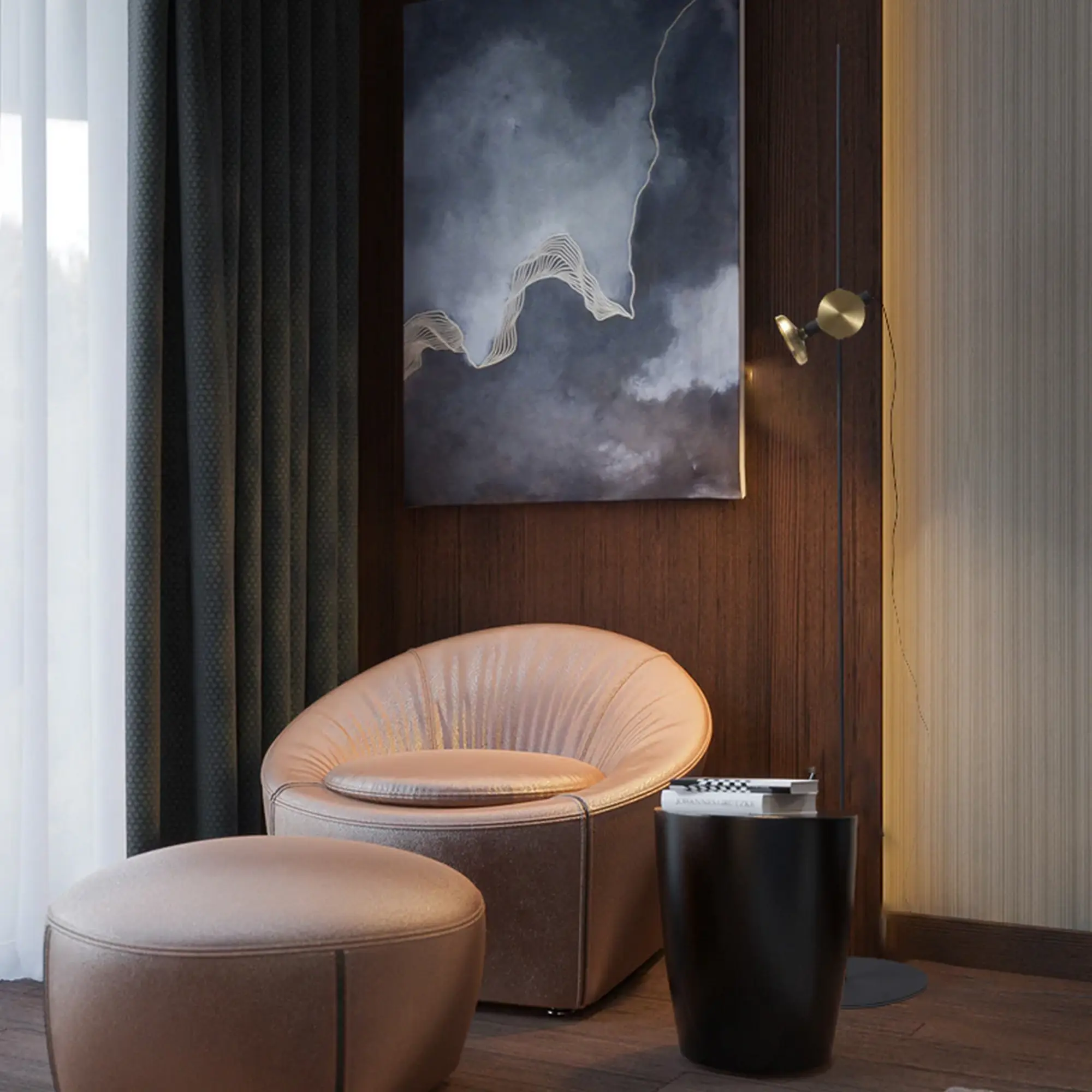 The soft and warm illumination emitted by the lamp creates a welcoming and intimate atmosphere. Whether used to brighten up a living room, bedroom, or office, the Blend Floor Lamp casts a gentle glow that enhances the ambiance and adds a touch of modern glamour to your space.