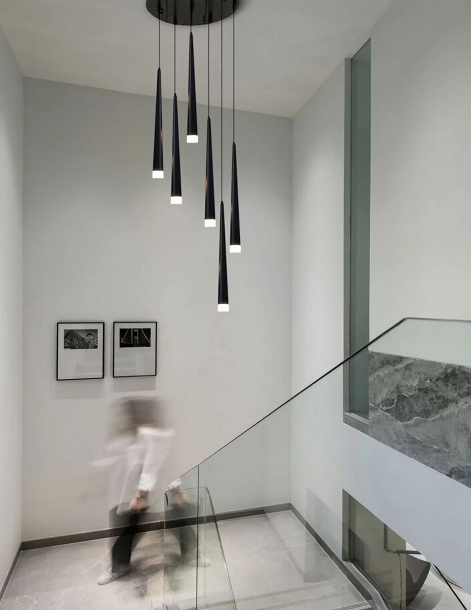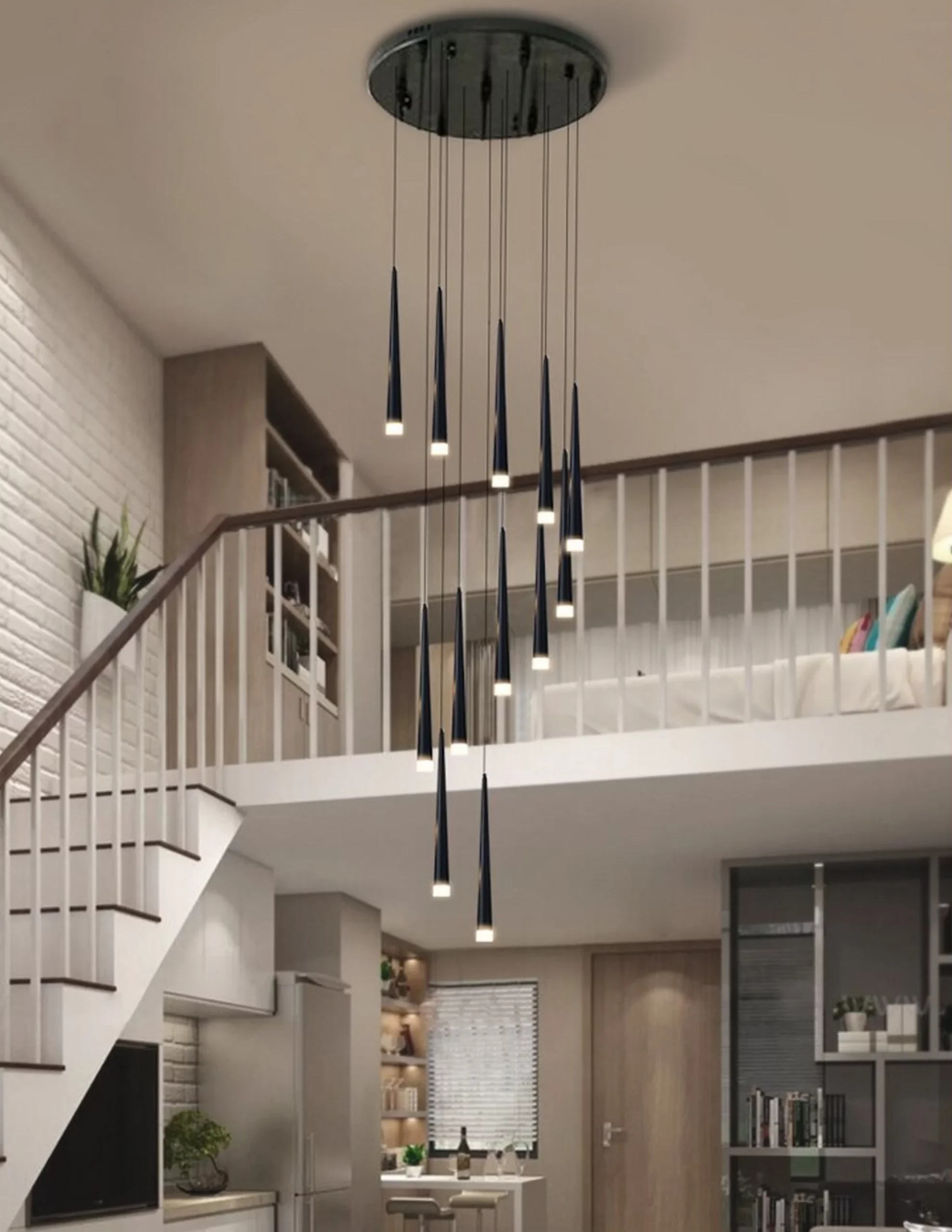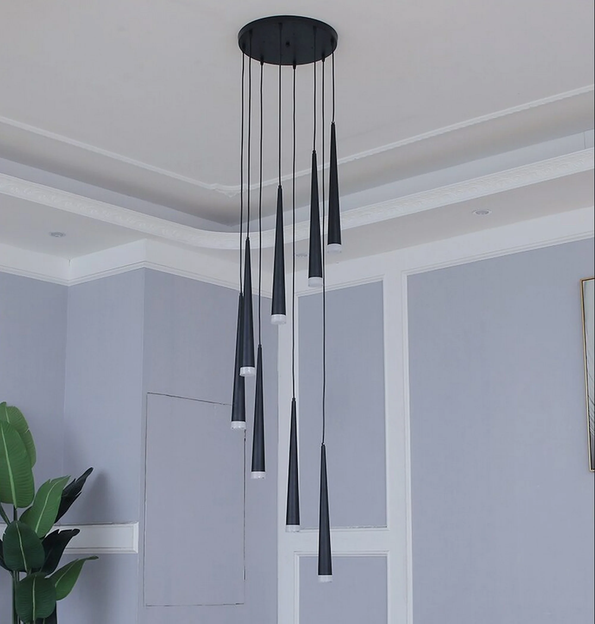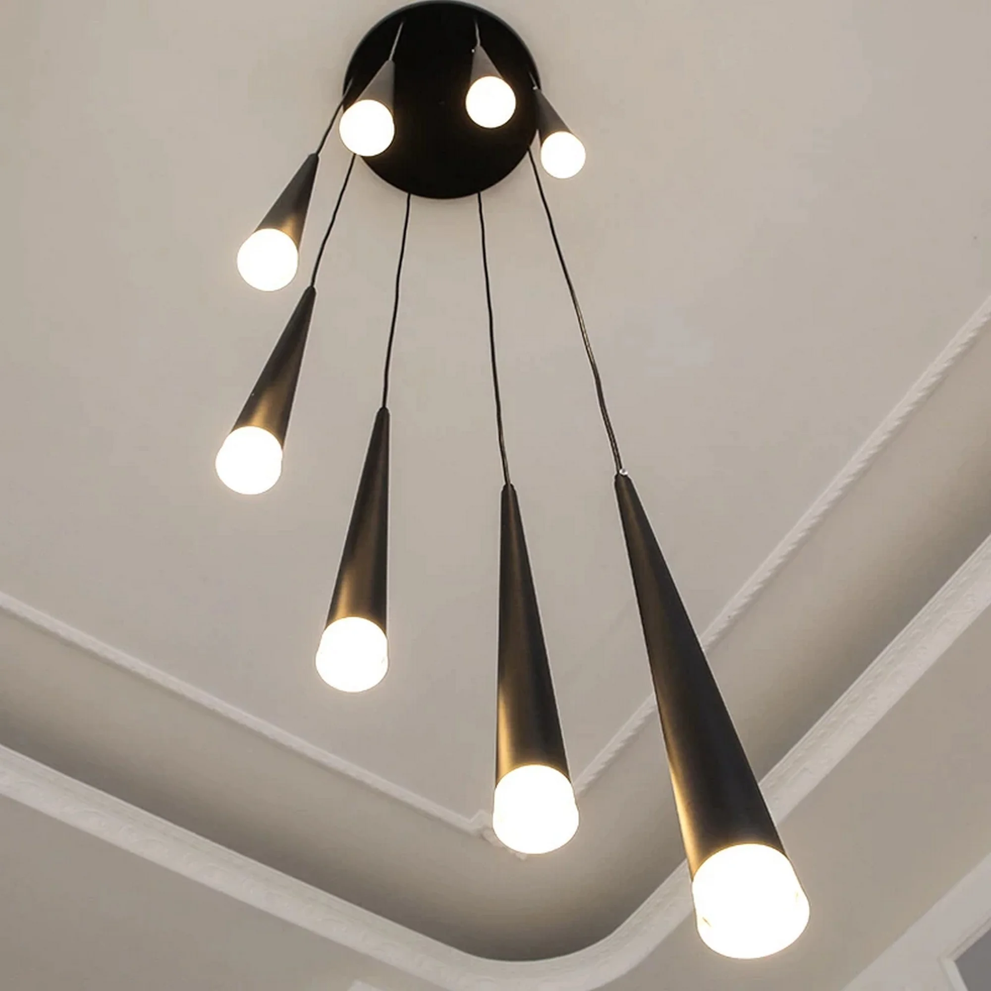 The sleek and stylish design is perfect for modern homes, and the LED bulbs provide bright and efficient lighting. Plus, the cone-shaped shades are sure to make a statement in any space.