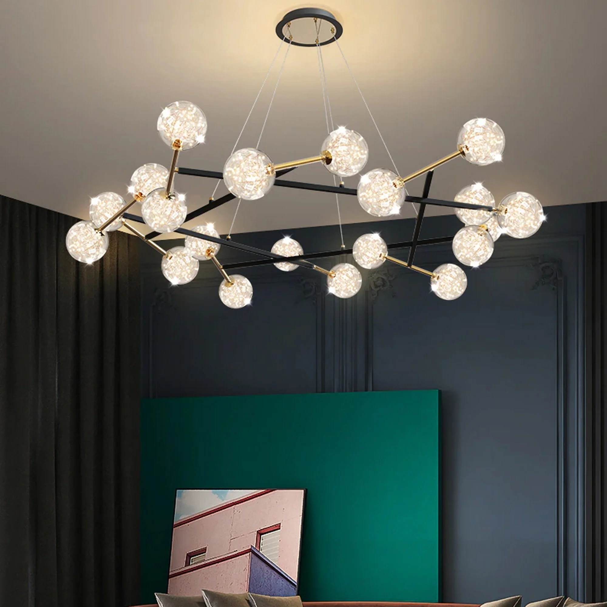 The LED Ball Chandelier features a mesmerizing arrangement of delicate glass spheres that radiate a soft, warm glow, illuminating your space with a touch of magic. Its versatile design allows it to effortlessly enhance a variety of settings, from luxurious hotels and modern homes to upscale restaurants and chic boutiques.