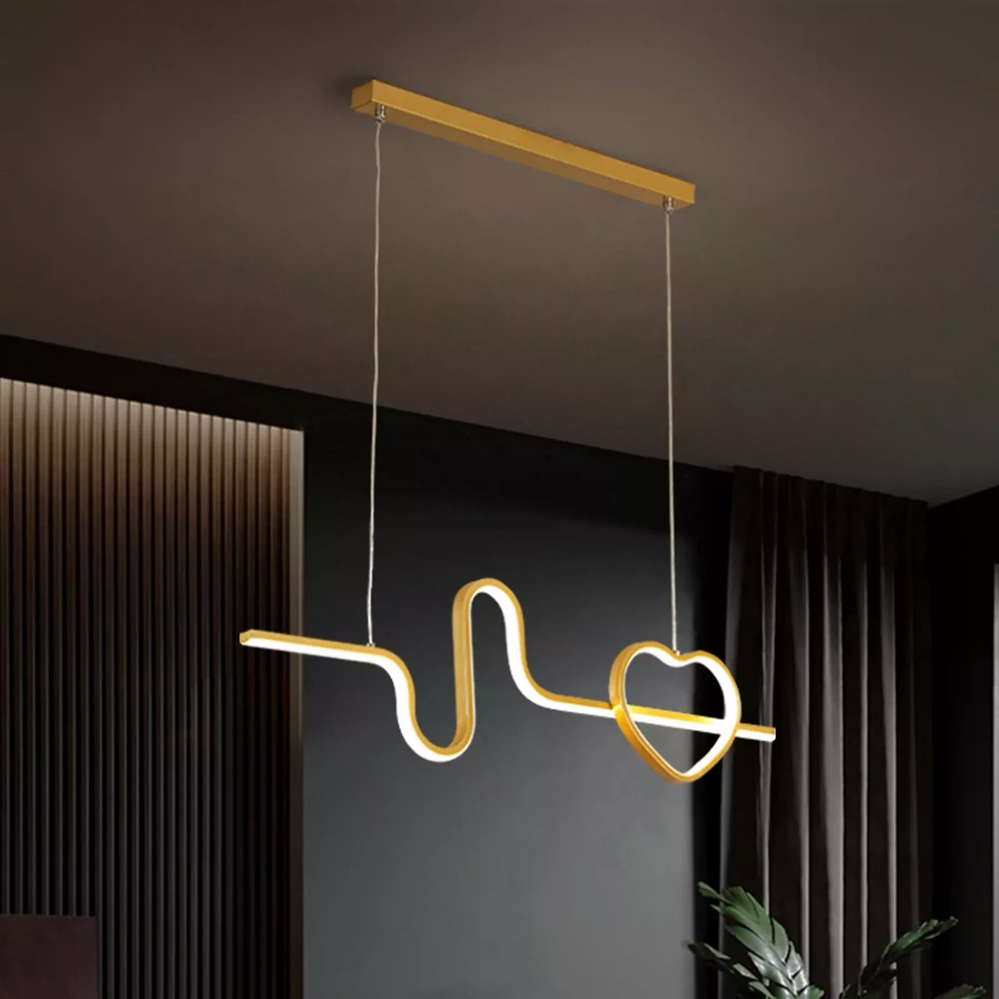 Crafted with precision and attention to detail, the Heart Beat Design LED Chandelier combines sleek lines with a mesmerizing heartbeat-inspired pattern, creating a visual symphony that enchants all who behold it. The integrated LED technology illuminates your surroundings with a soft, warm glow, casting an enchanting ambiance that instantly uplifts the atmosphere.