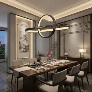 The chandelier’s oval ring shape is a true testament to modern design at its finest. Its sleek and streamlined form creates a captivating visual statement, making it a perfect centerpiece for grand dining rooms, luxurious living spaces, or high-end hotel lobbies.