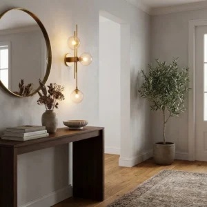 This modern glass wall lamp combines transparency with refined structure to create a clean, contemporary lighting feature. The glass element enhances light diffusion, producing a soft, balanced glow while maintaining visual clarity. Its minimal design allows it to blend seamlessly into modern interiors, adding both function and subtle elegance. Glass wall lamps are widely valued for their ability to create a warm, inviting atmosphere while keeping a lightweight, sophisticated appearance