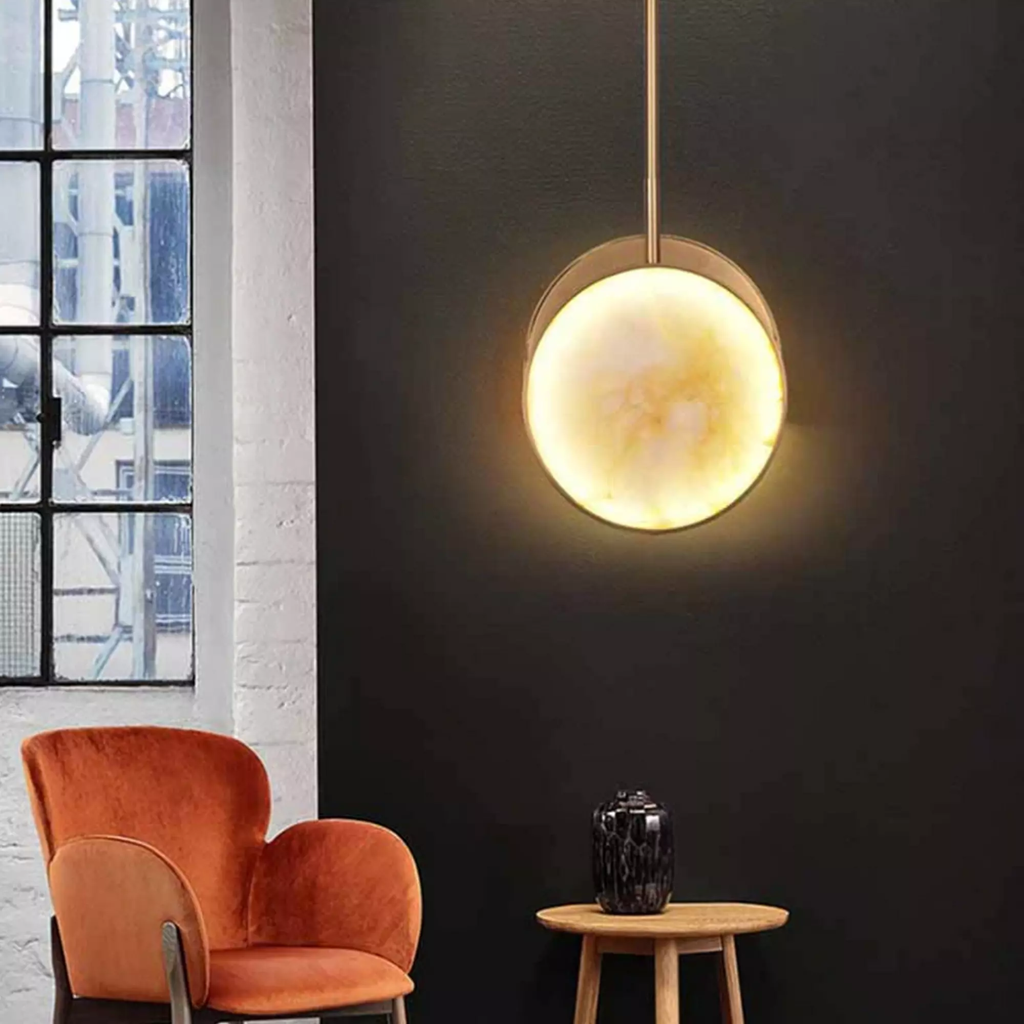 Crafted with meticulous attention to detail, this light showcases the natural beauty and unique veining patterns of marble, making each piece one-of-a-kind. The round shape creates a visually pleasing focal point, enhancing the overall aesthetics of your decor.