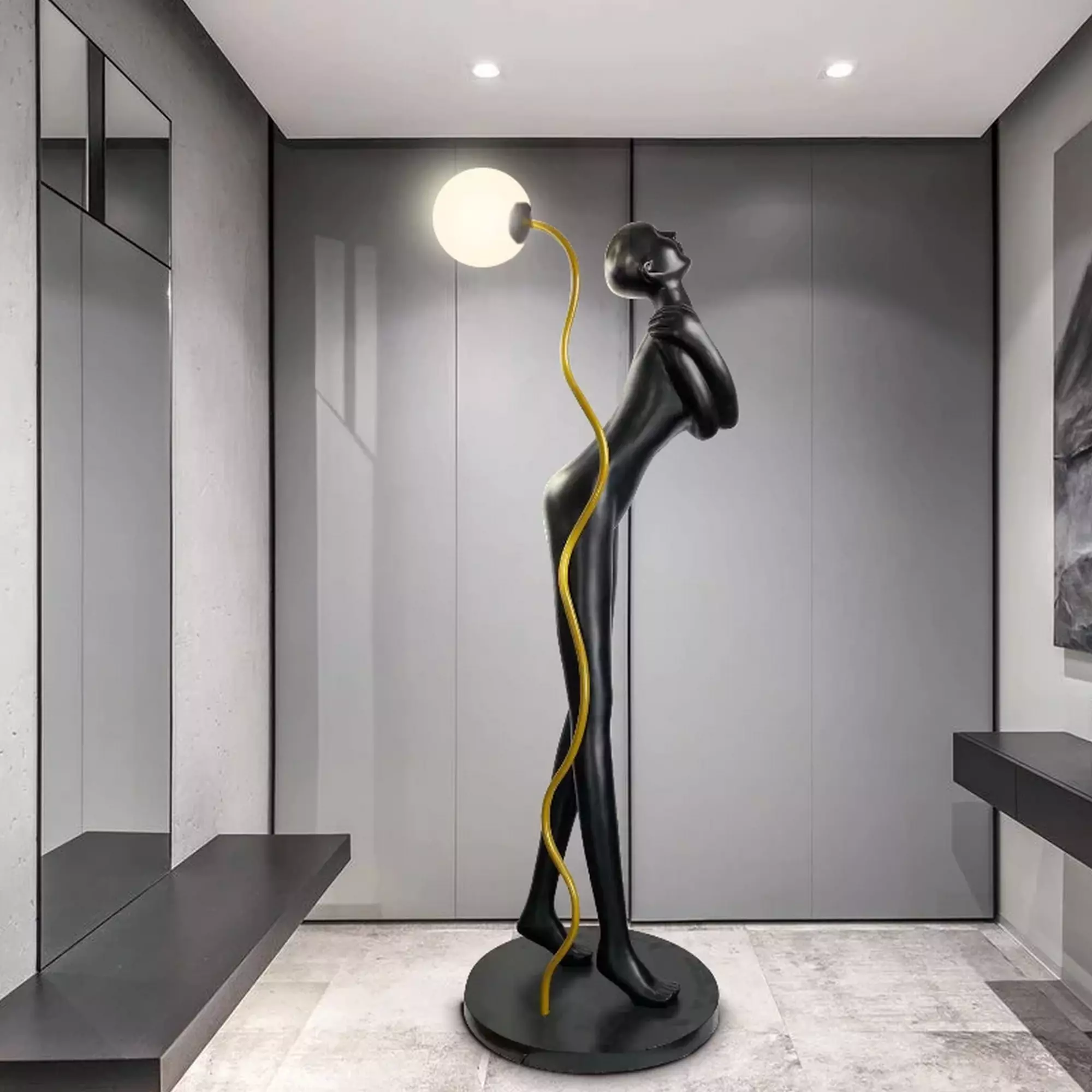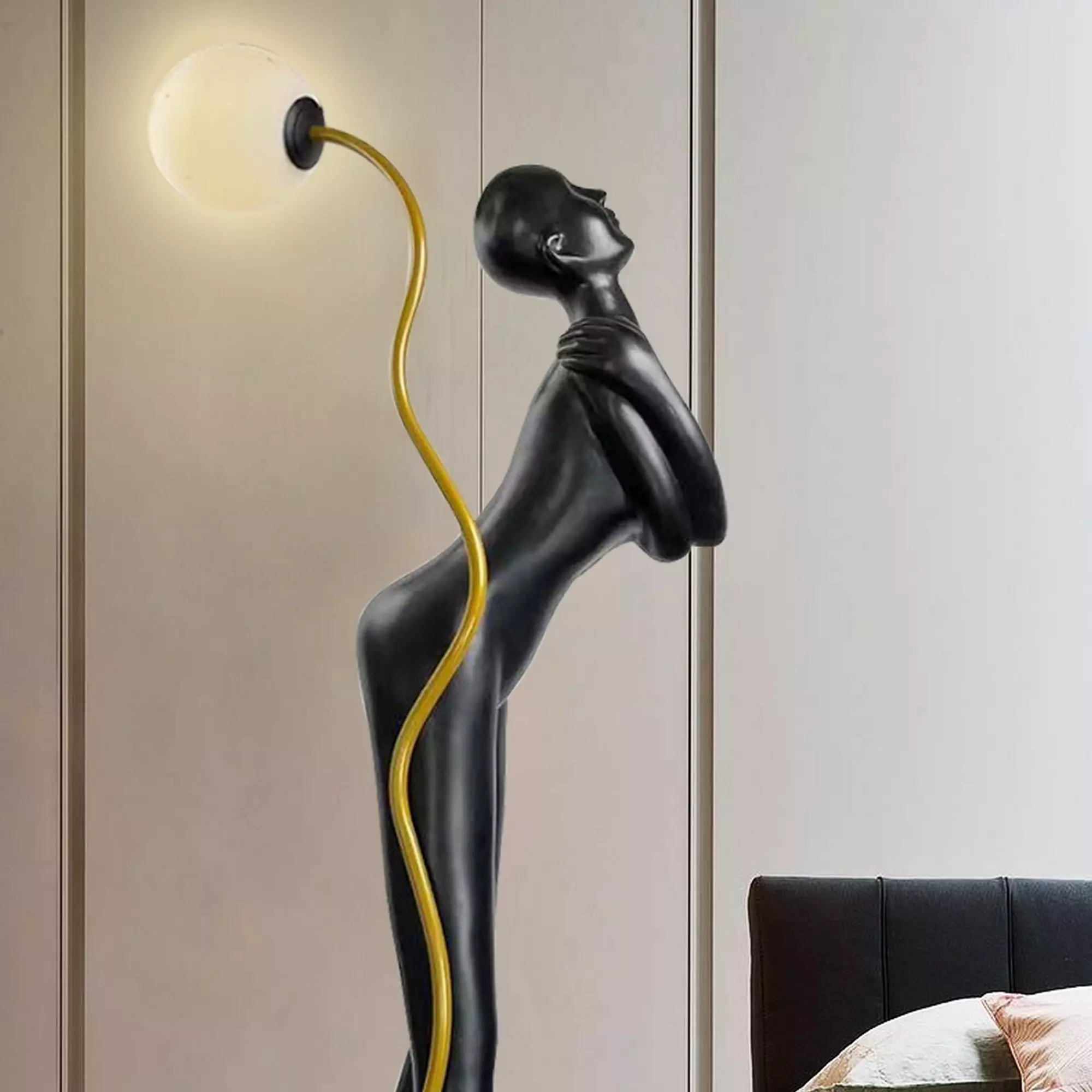 Introducing the Charming Human Art Sculpture Floor Lamp, a captivating fusion of artistic expression and functional lighting that will elevate your interior design to new heights. Immerse yourself in the enchantment and allure of this exquisite piece that seamlessly blends form and function.
