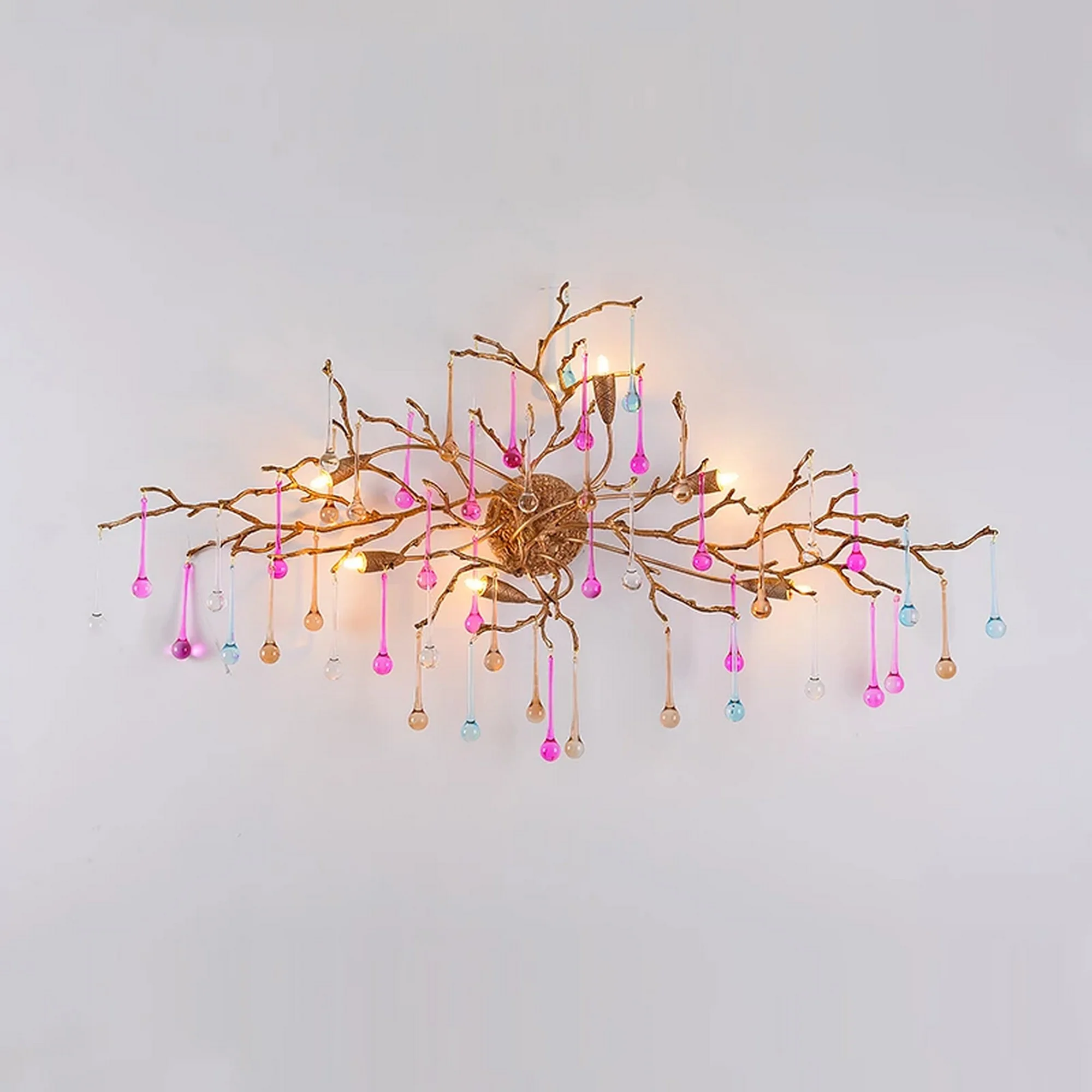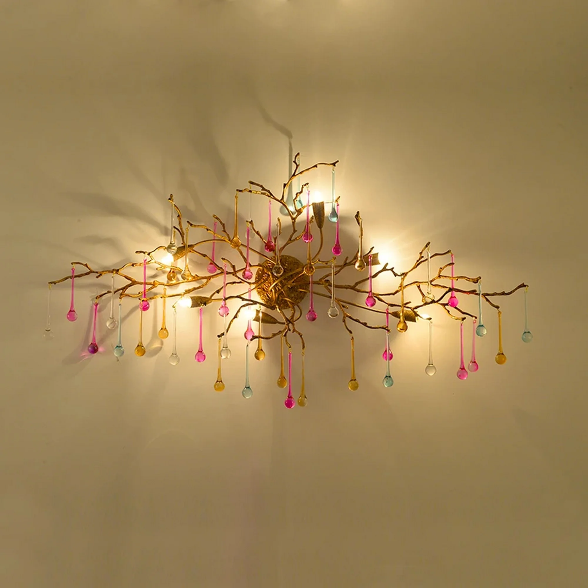 Crafted from high-quality materials and finished with beautiful crystal branches, this wall lamp is a true work of art. The intricate details and luxurious finish of the lamp will add a touch of opulence to your decor, making it the perfect choice for anyone looking to elevate their home design.