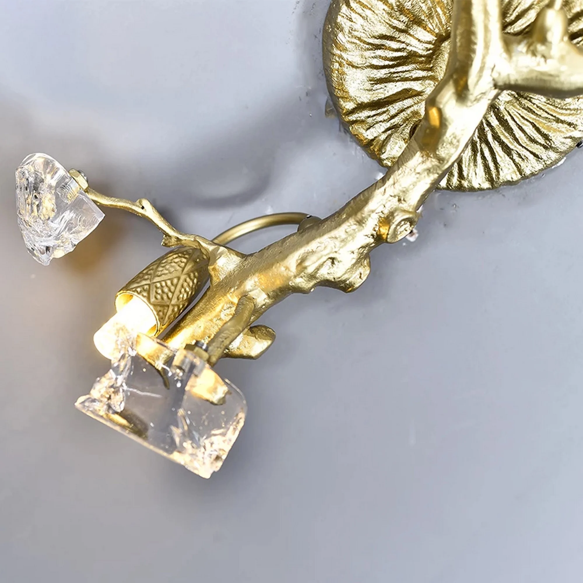 Crafted with meticulous attention to detail, the Luxury Style Black Glass Lotus Leaves Wall Lamp boasts a unique design that embodies elegance and opulence. The black glass lotus leaves delicately fan out, casting a soft and alluring glow that emanates a sense of tranquility and serenity. This wall lamp is not just a source of light; it is a statement piece that adds an element of artistry to any space.