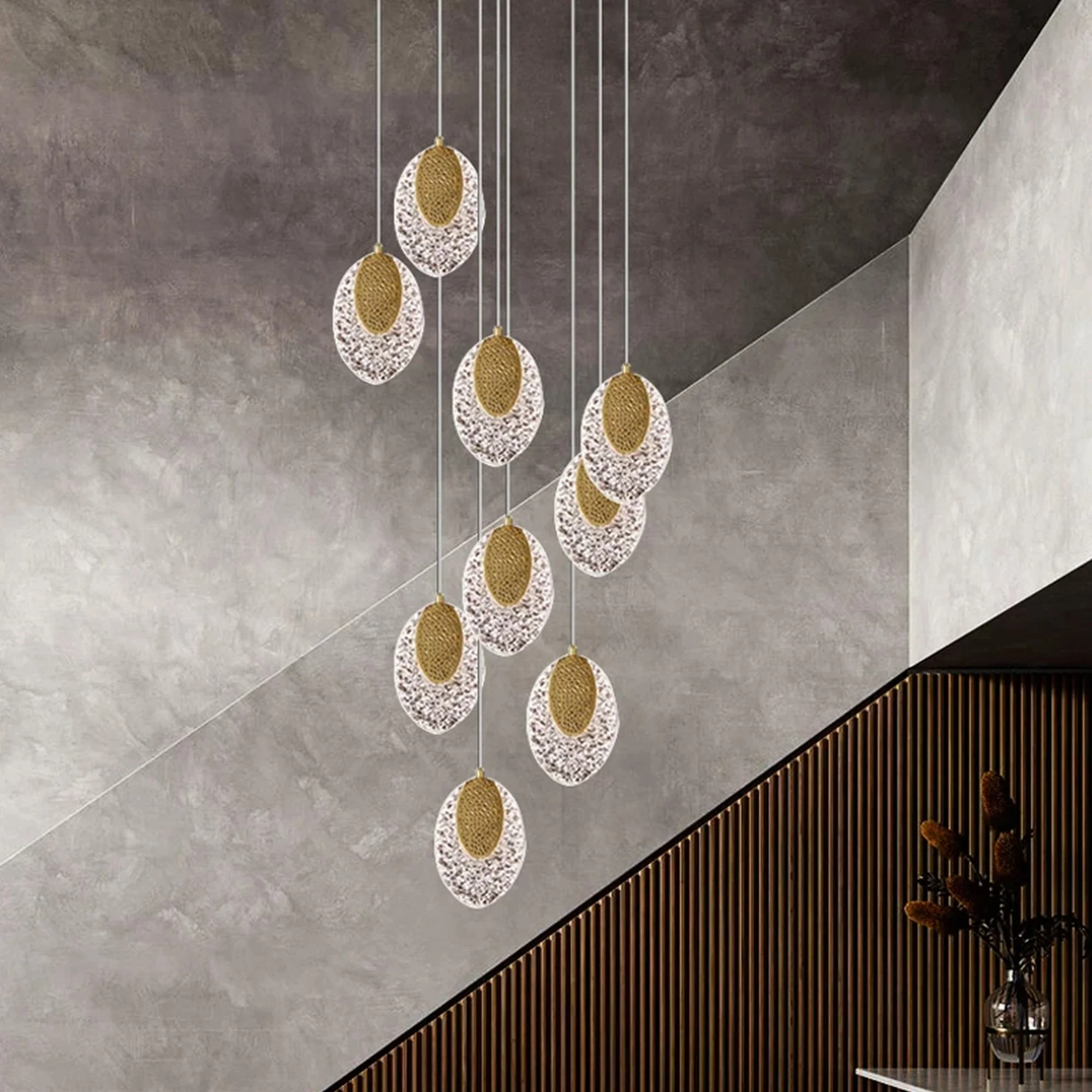 1 X Charming Gold Acrylic Staircase Chandelier
