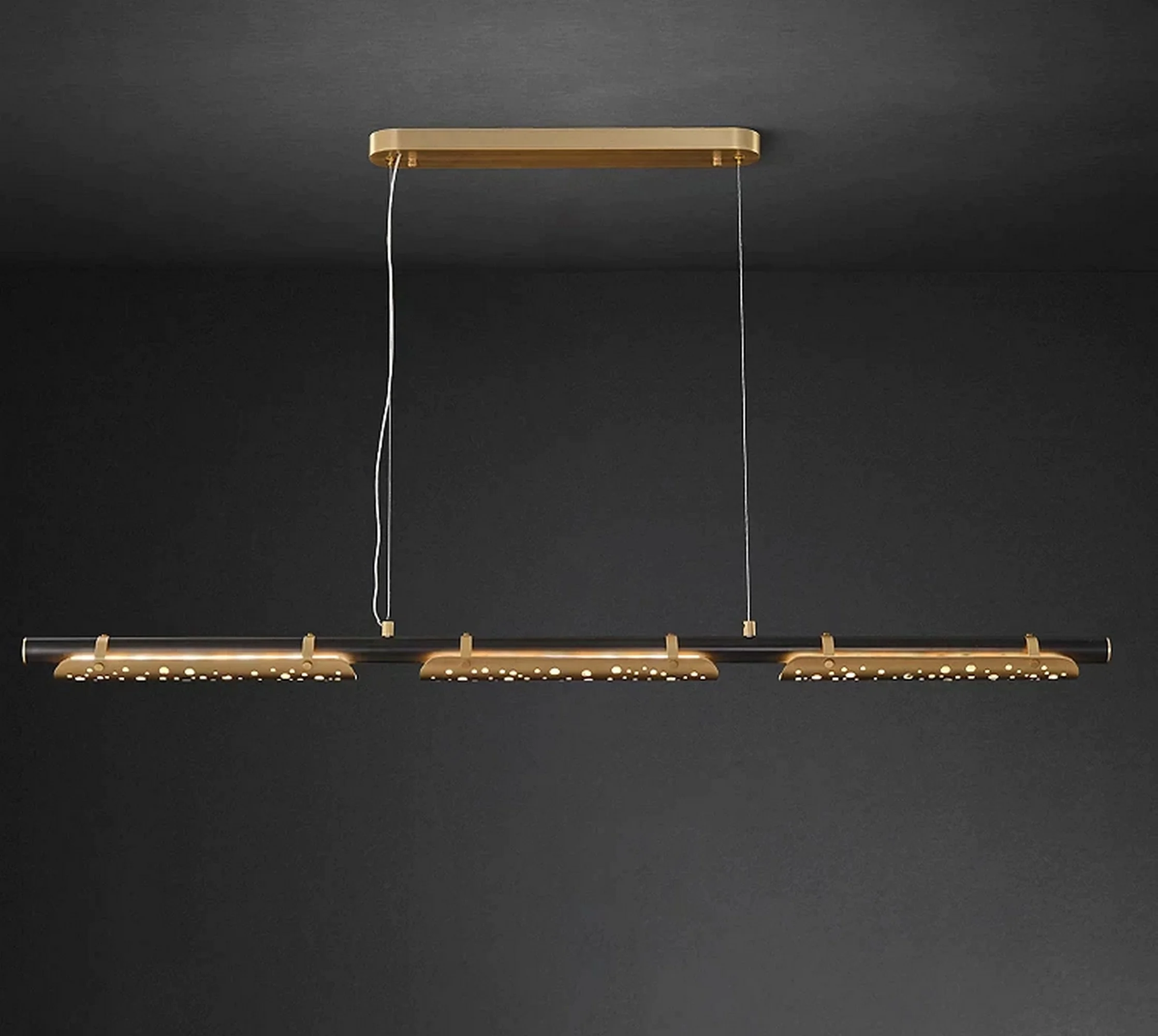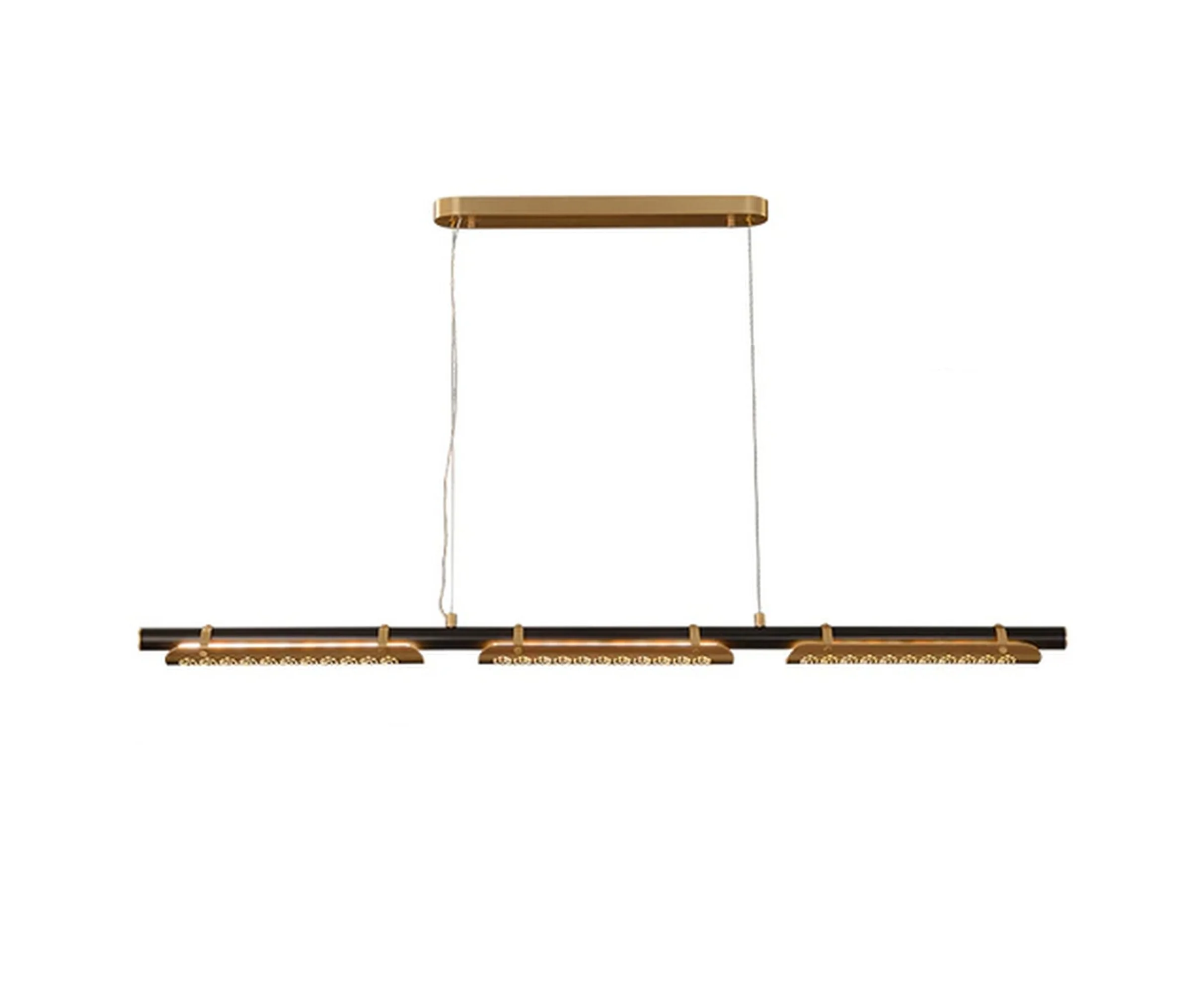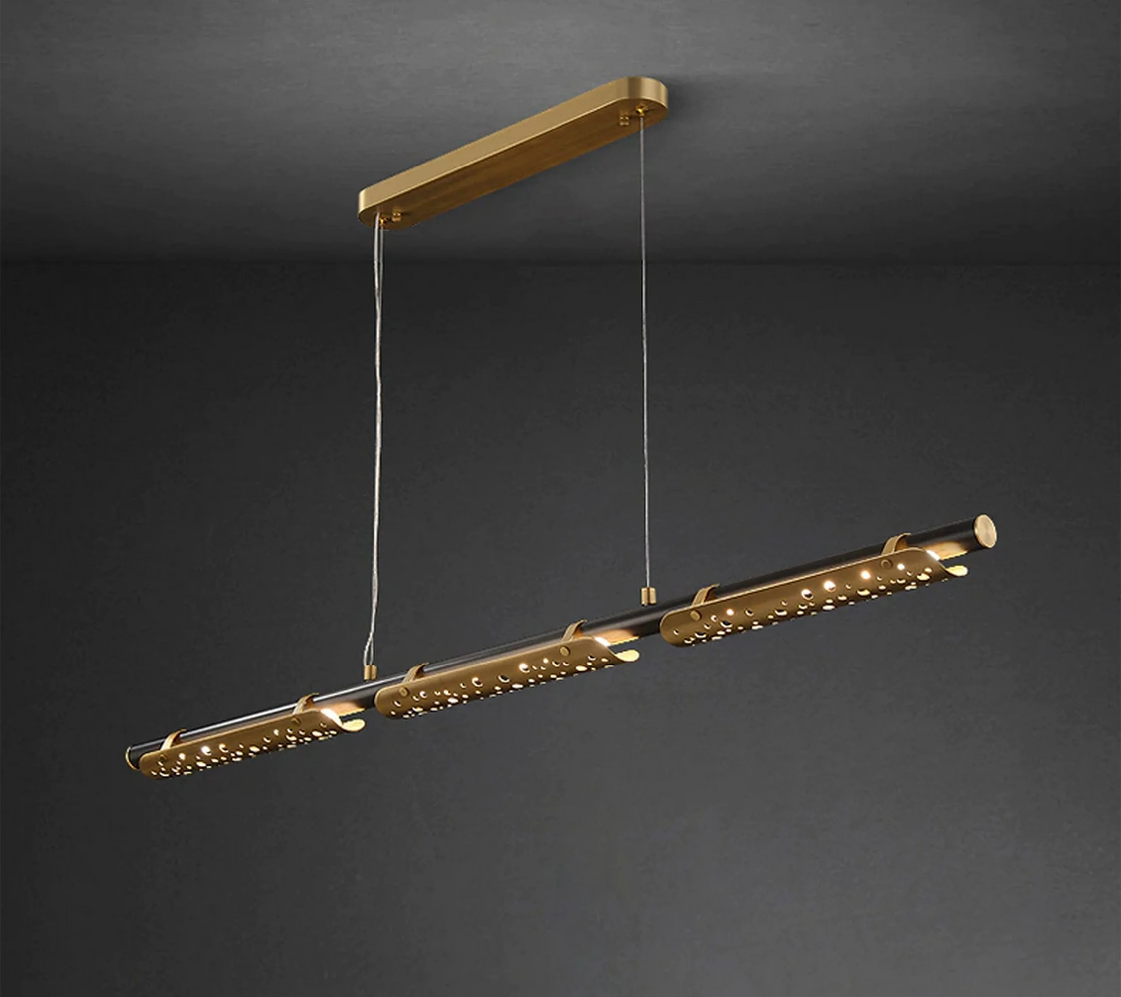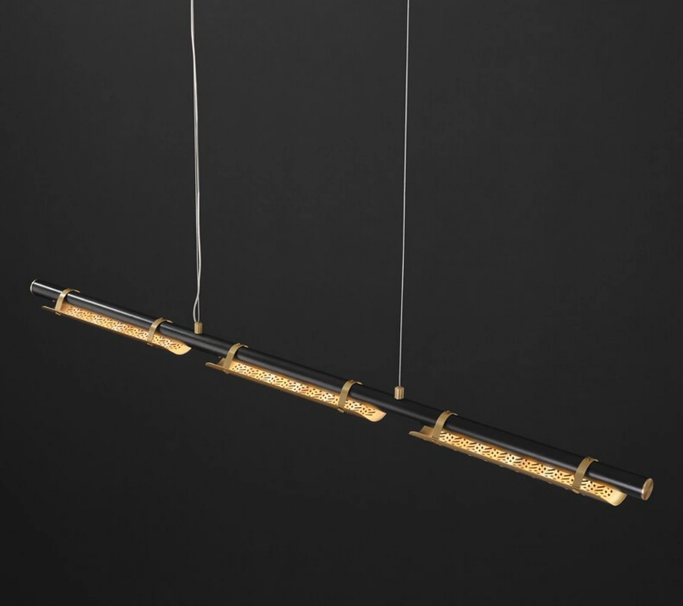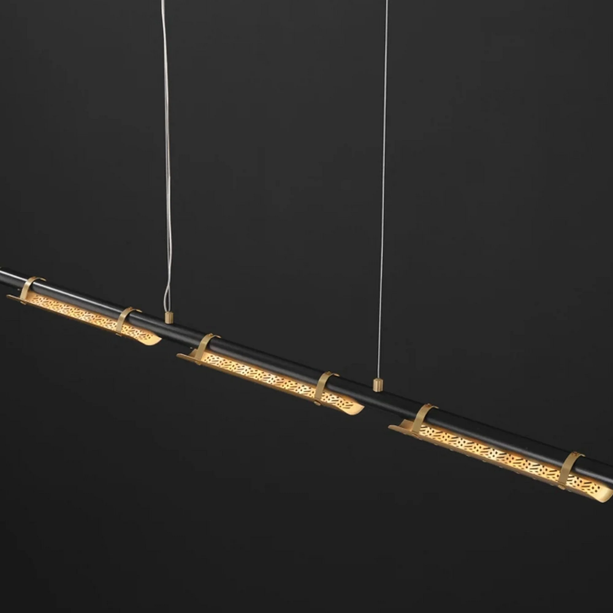 The chandelier’s intricate design features long hollow copper tubes, meticulously arranged to create a captivating interplay of light and shadow. Each detail reflects the mastery of tradition, showcasing their dedication to exquisite craftsmanship and attention to every nuance.