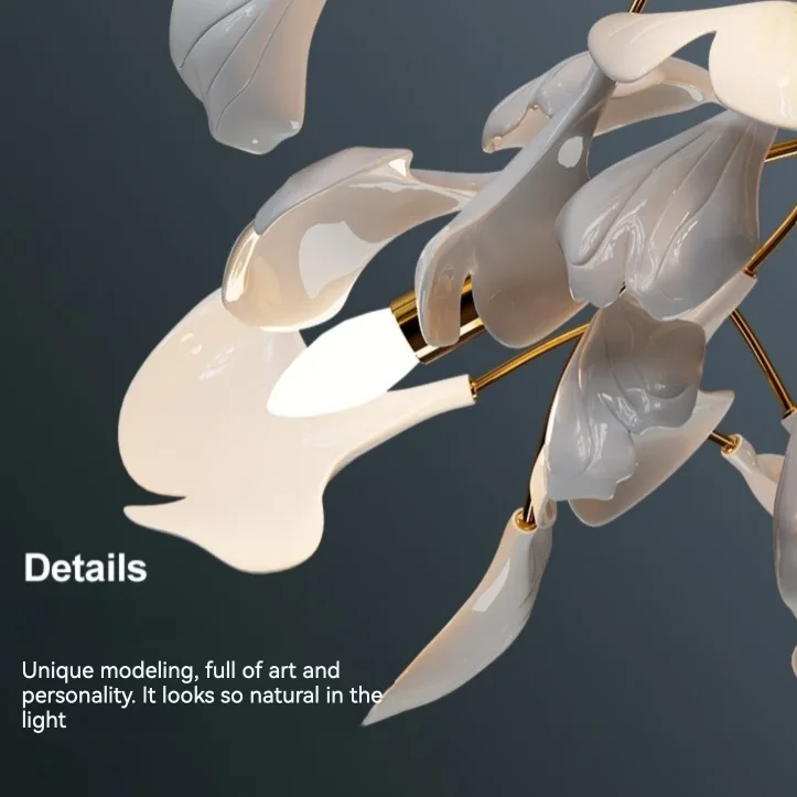 Designed to command attention and evoke a sense of wonder, this chandelier becomes a striking focal point in any space it graces. Whether installed in a dining room to create an enchanting ambiance for intimate gatherings, in a foyer to welcome guests with its artistic flair, or in a living room to add a touch of botanical charm to the decor, its presence exudes elegance and sophistication.
