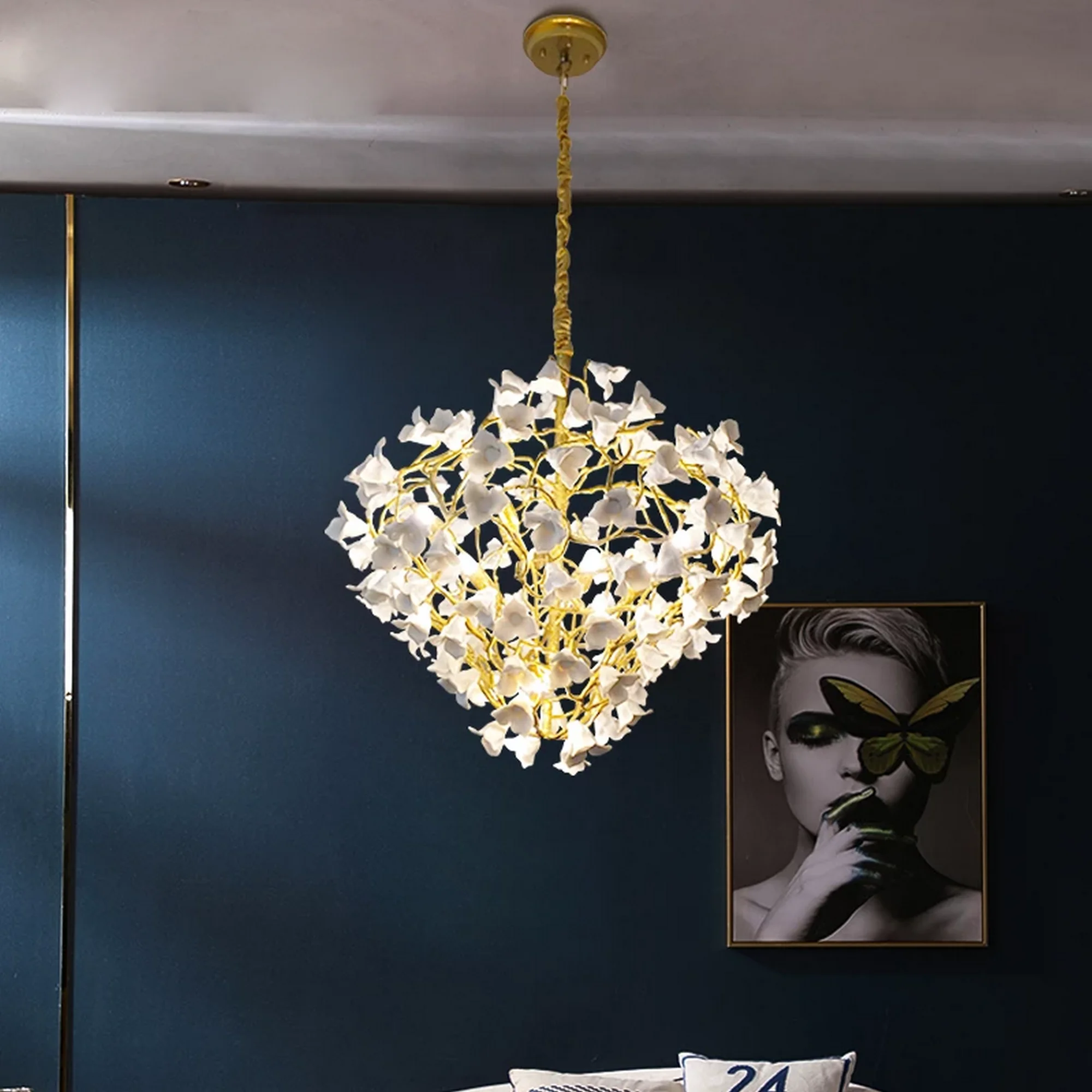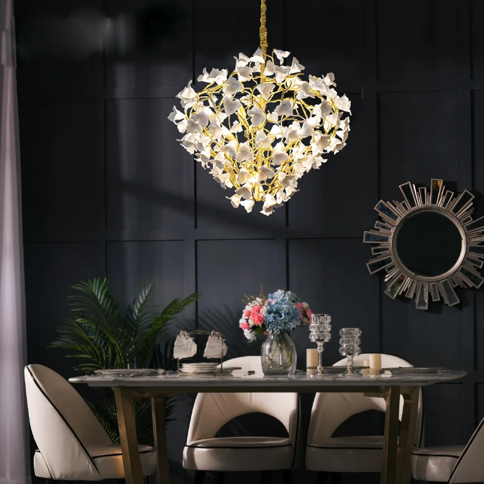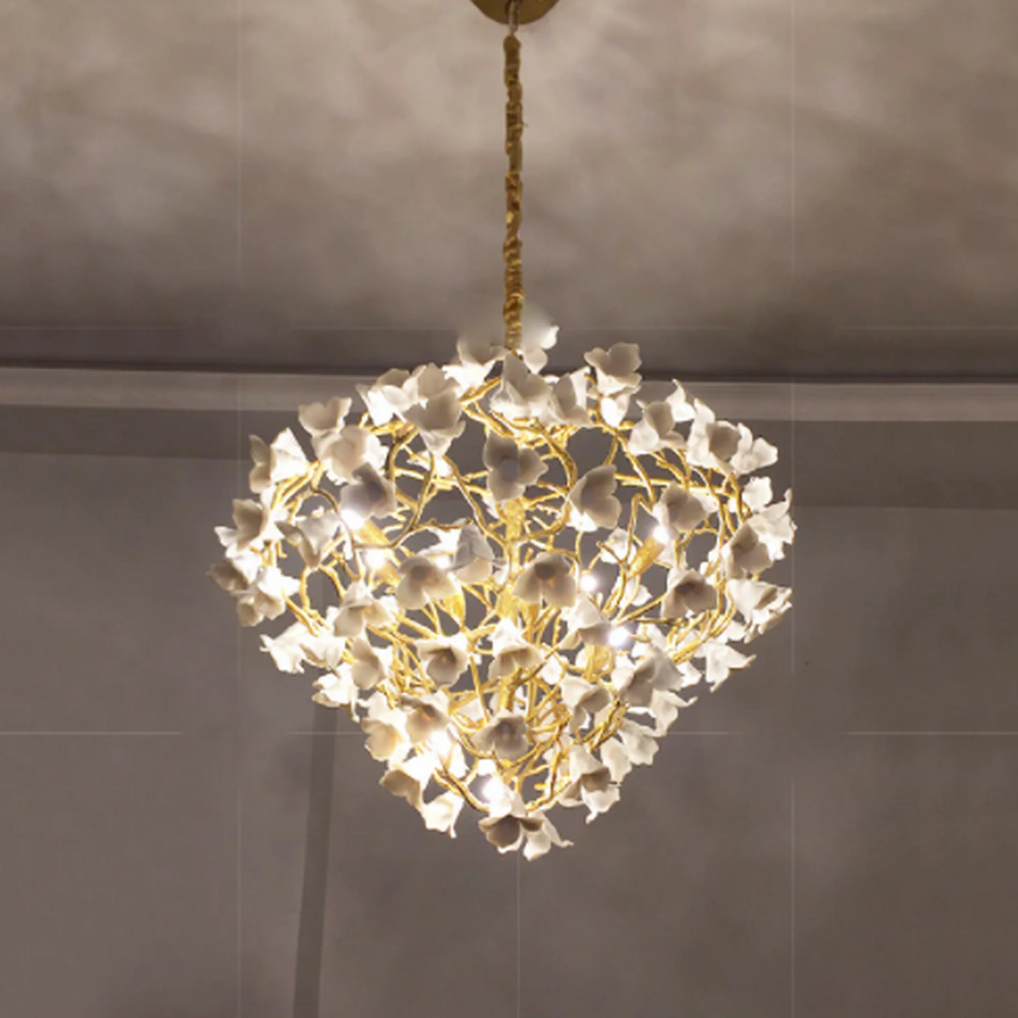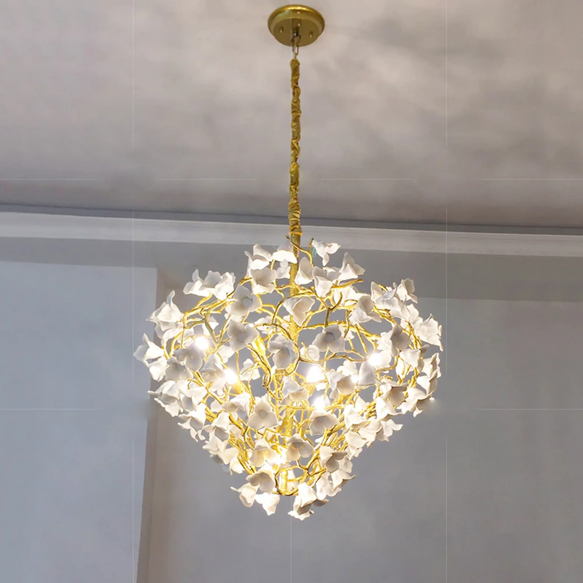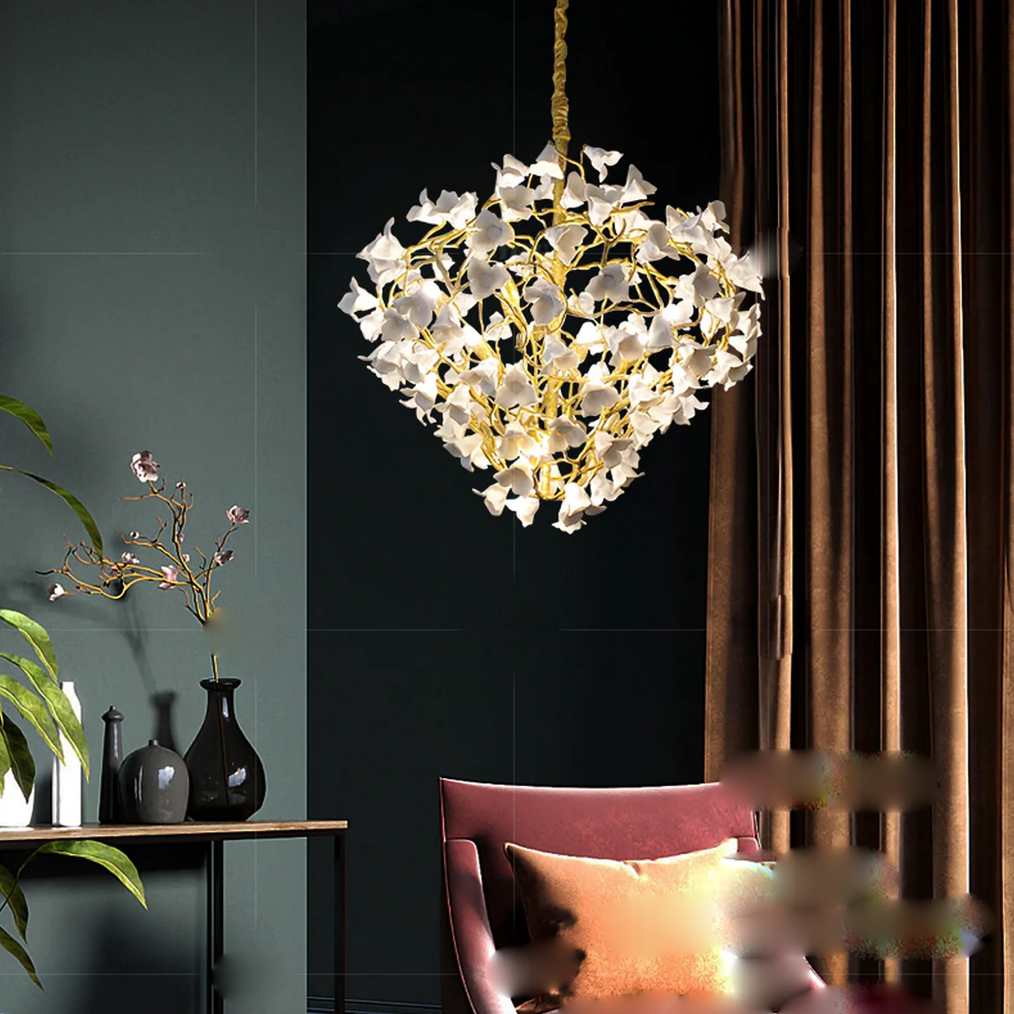 Whether adorning a serene bedroom, an intimate dining area, or a luxurious spa, this chandelier brings a sense of enchantment to any interior. The soft glow emitted from the ceramic flowers creates a serene ambiance, transforming your space into a sanctuary of luxury and relaxation.