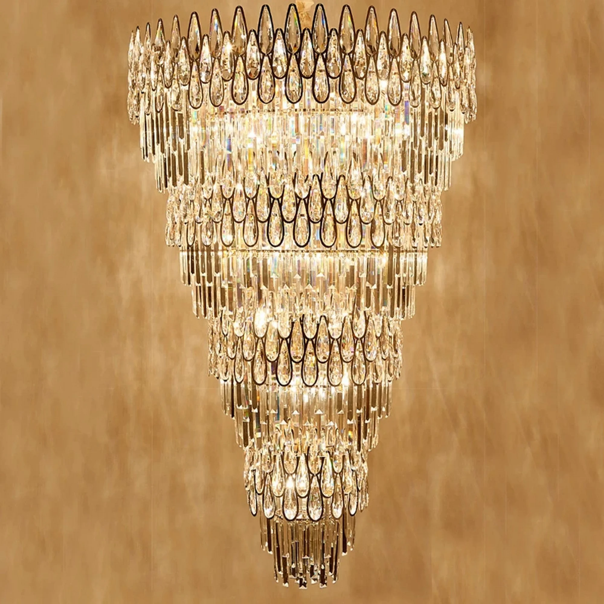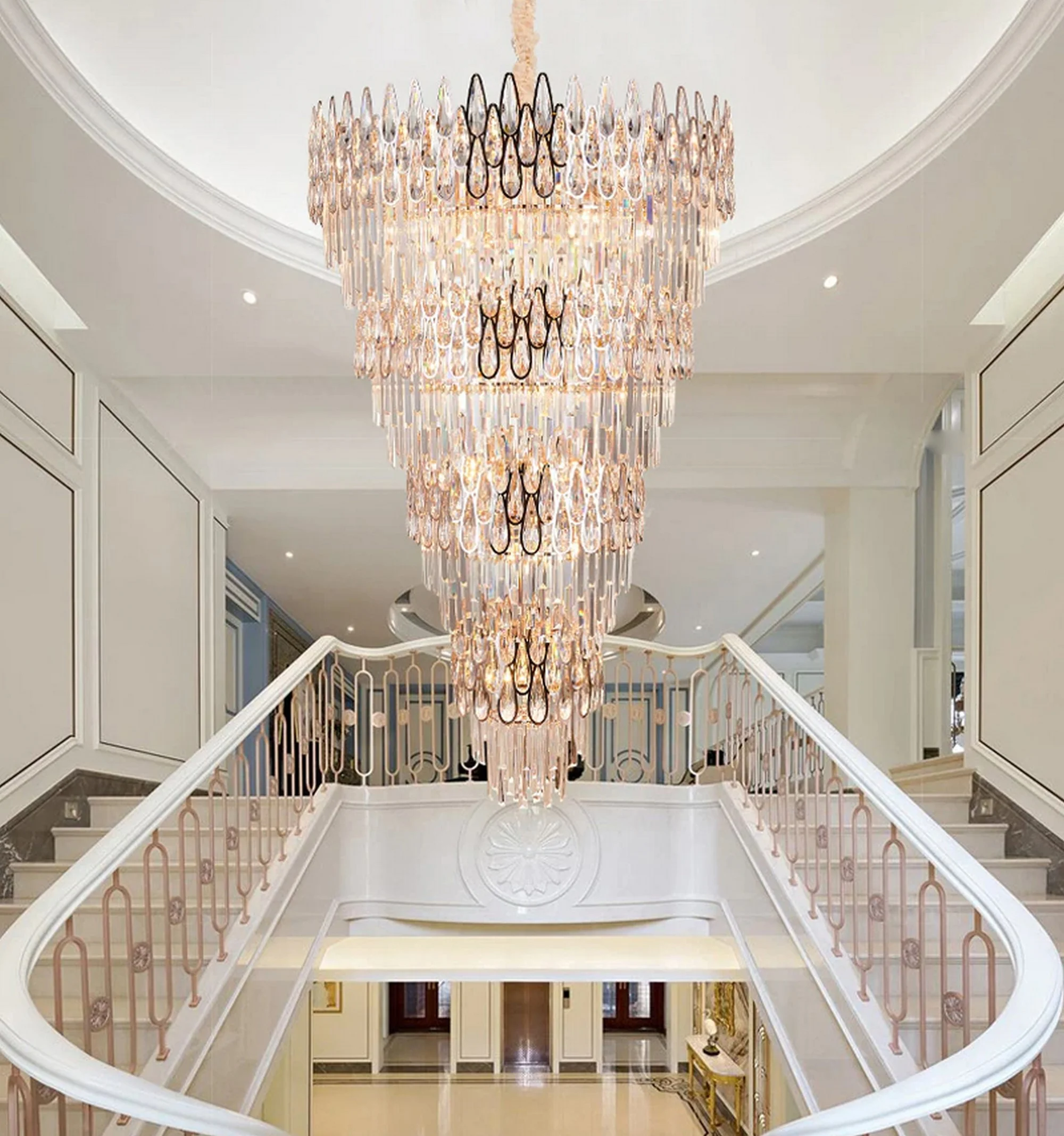 Look no further than our luxury crystal staircase chandelier! This elegant light fixture is sure to make a statement in any room of your house. Whether you hang it over your kitchen island, in your living room, or even in your bathroom, this chandelier is sure to turn heads.