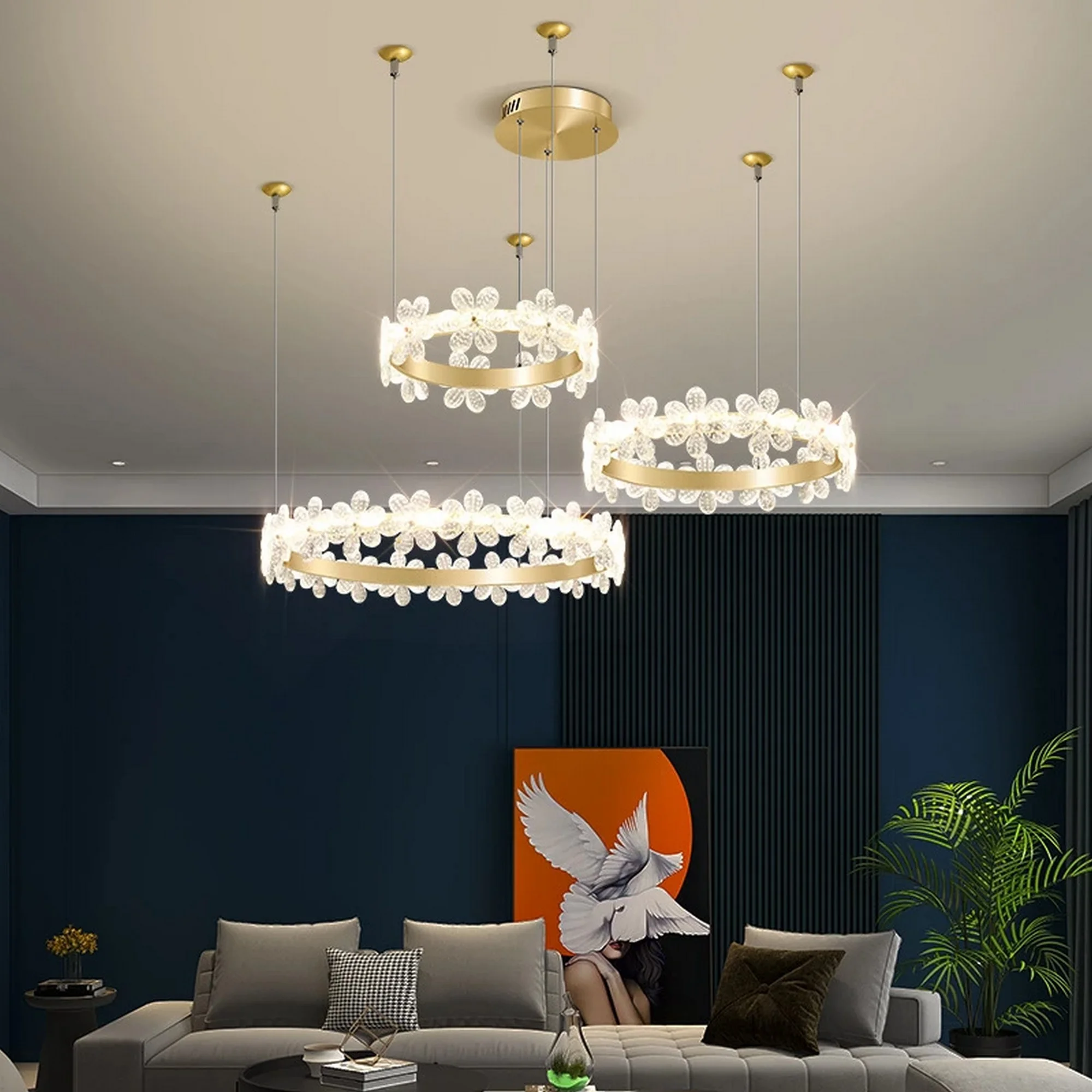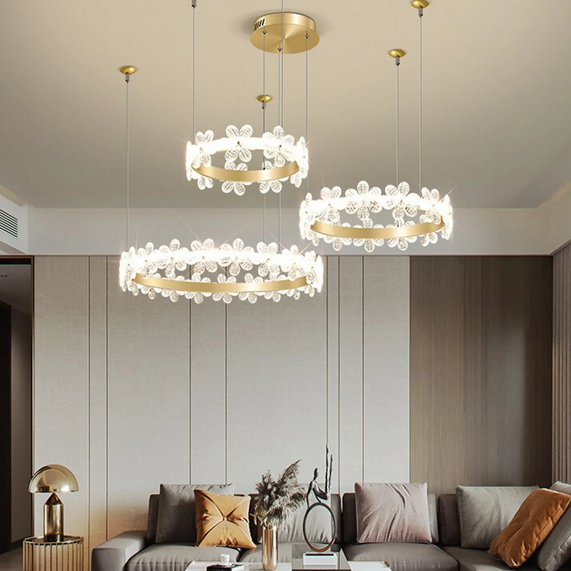 Transform your space into a haven of sophistication with the Luxury Flower Rings Chandelier. Elevate your design and immerse yourself in the splendor of luxury with this extraordinary lighting piece. Let the radiant charm of our chandelier cast its spell on your home, creating an ambiance of timeless allure and allure and making every moment magical.