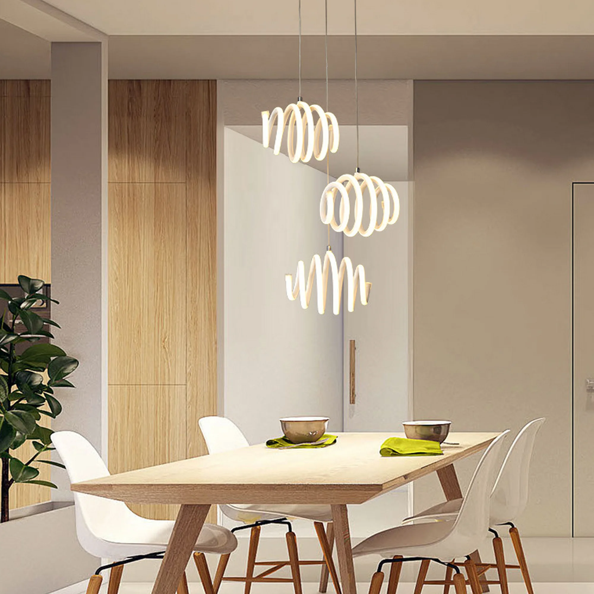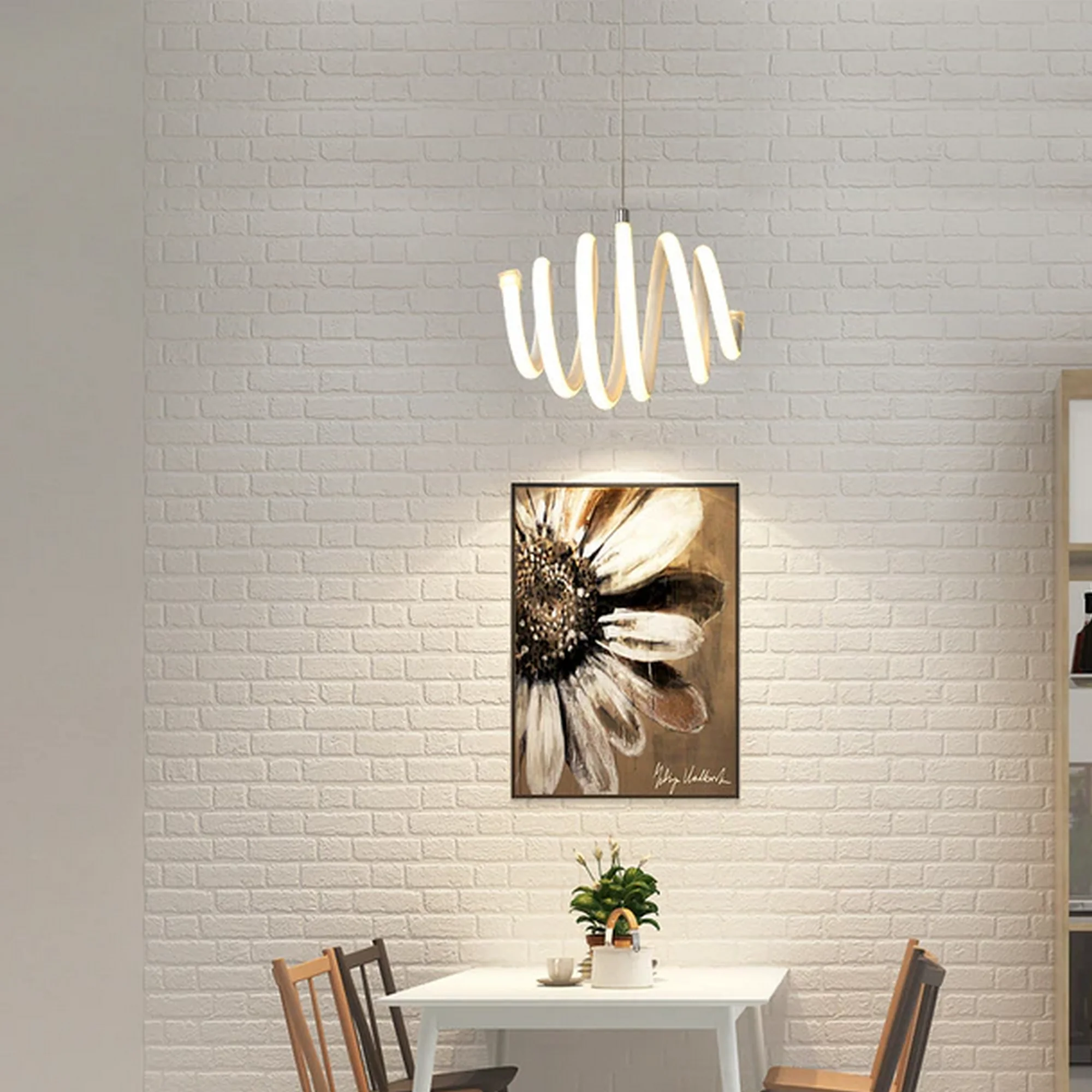 Crafted with precision, the stunning spiral design of this pendant light adds a dynamic focal point to any room, captivating all who behold its artistic allure. The cutting-edge LED technology illuminates your space with a soft, yet powerful radiance, creating an inviting atmosphere for any occasion.