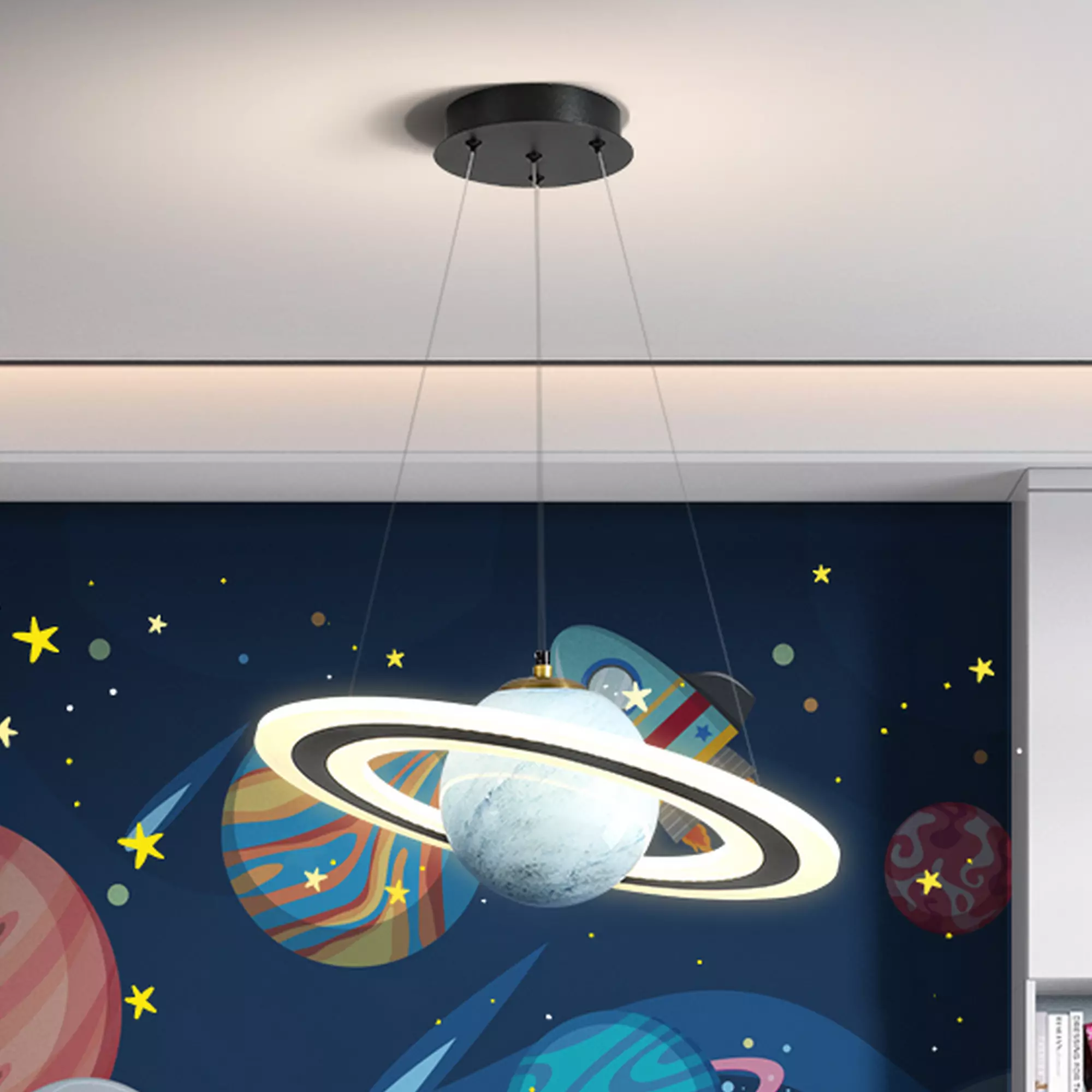 Whether you’re aiming for a contemporary, eclectic, or even mystical decor style, the Creative Planet Glass Ball Pendant Lamp is a must-have addition. It’s versatile design and imaginative allure make it a perfect fit for various design concepts. Hang it as a singular statement piece or create a constellation of multiple pendant lamps to evoke a celestial atmosphere, and watch as it transforms the ambiance with its otherworldly charm and ambient lighting.
