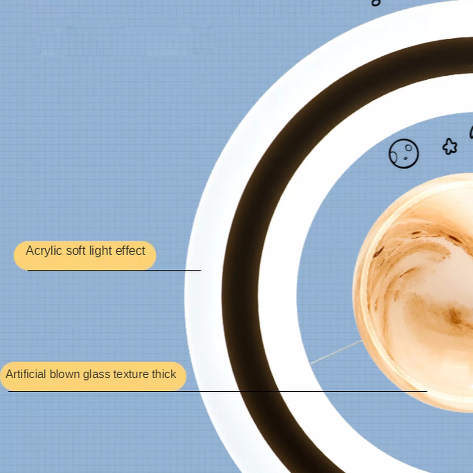 Introducing the Creative Planet Glass Ball Pendant Lamp, a mesmerizing and imaginative addition that will elevate your design to new heights of inspiration and celestial beauty. This exquisite pendant lamp features a unique glass ball design, reminiscent of a miniature planet suspended in mid-air, adding a touch of wonder and artistic intrigue to any space.