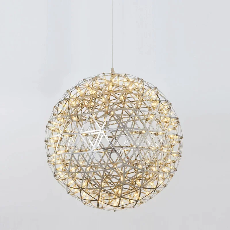 Introducing the Raimond Pendant Light – a captivating lighting fixture that combines modern design with artistic elegance. The Raimond Chandelier features a stunning spherical design, created by an intricate pattern of light points that reflect and diffuse, casting a beautiful glow in any room.