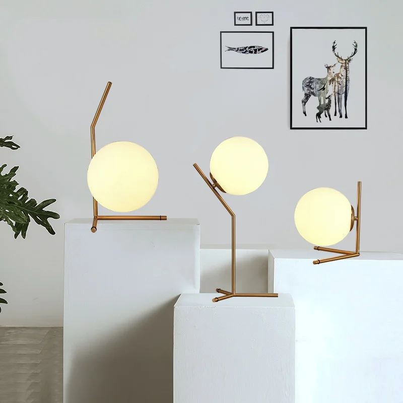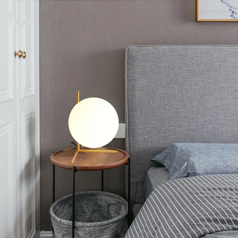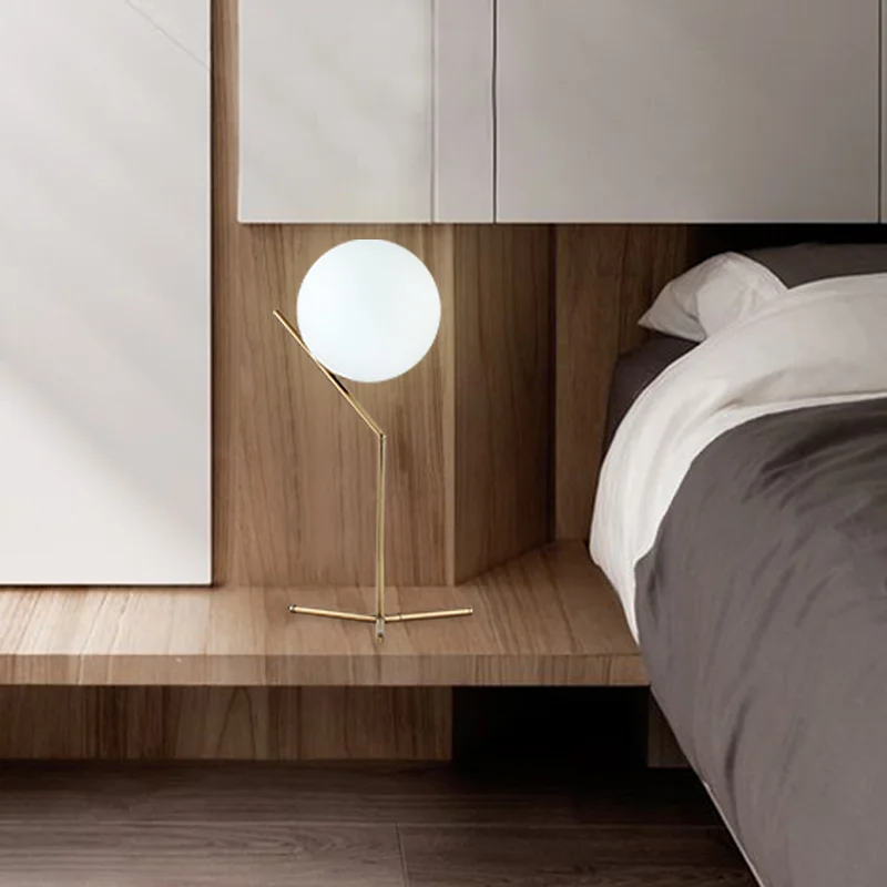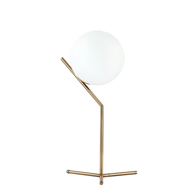 The captivating design of the IC LIGHTS showcases a gracefully suspended opal glass sphere, seemingly defying gravity as it delicately balances on a slender metal stem. The lamp emits a warm and inviting glow, casting a soft and ambient light that transforms any space into a haven of modern refinement.