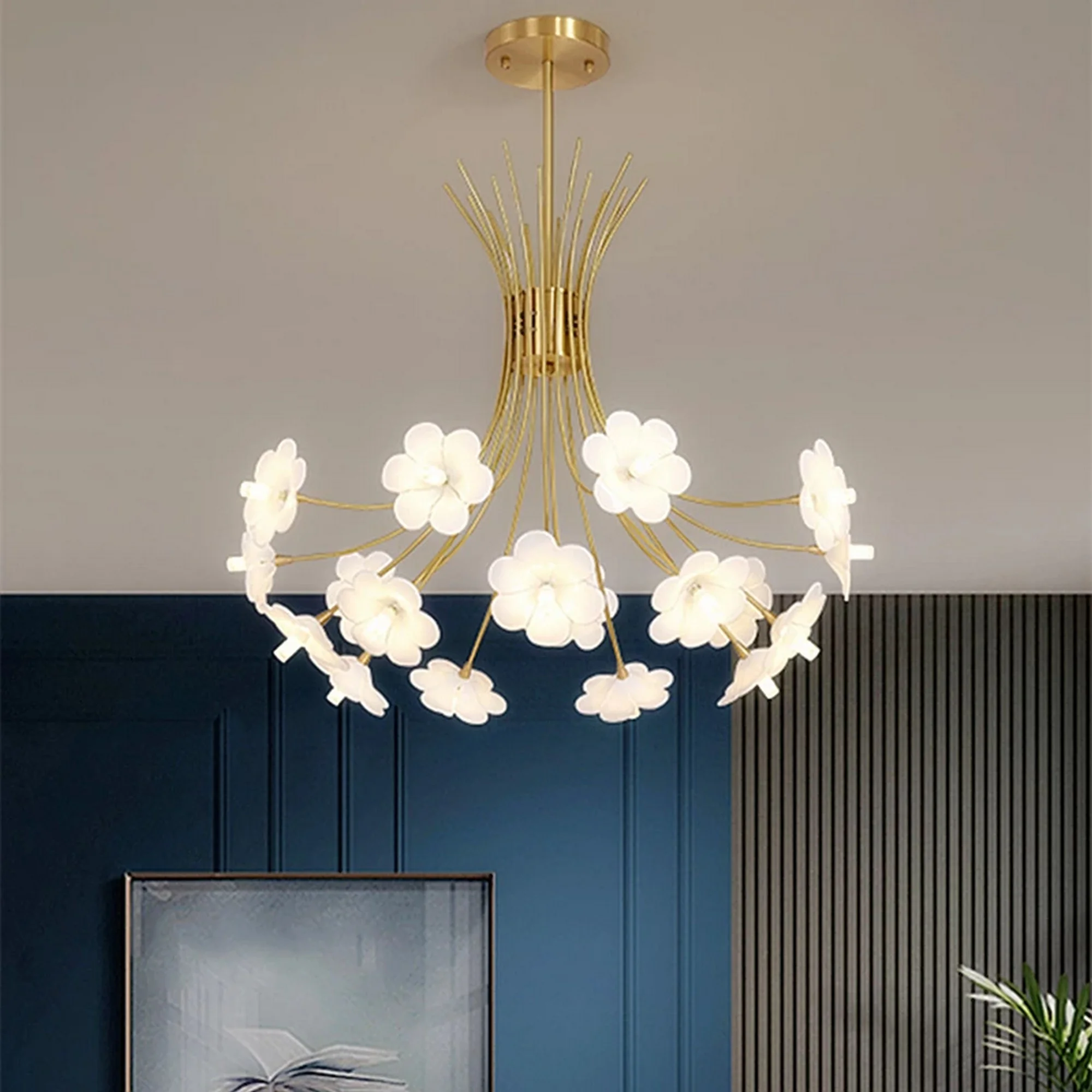 Crafted with a beautiful bloom design, this chandelier evokes the feeling of a spring garden in full bloom. The warm lighting creates a cozy and inviting ambiance, perfect for entertaining guests or enjoying a relaxing evening at home.