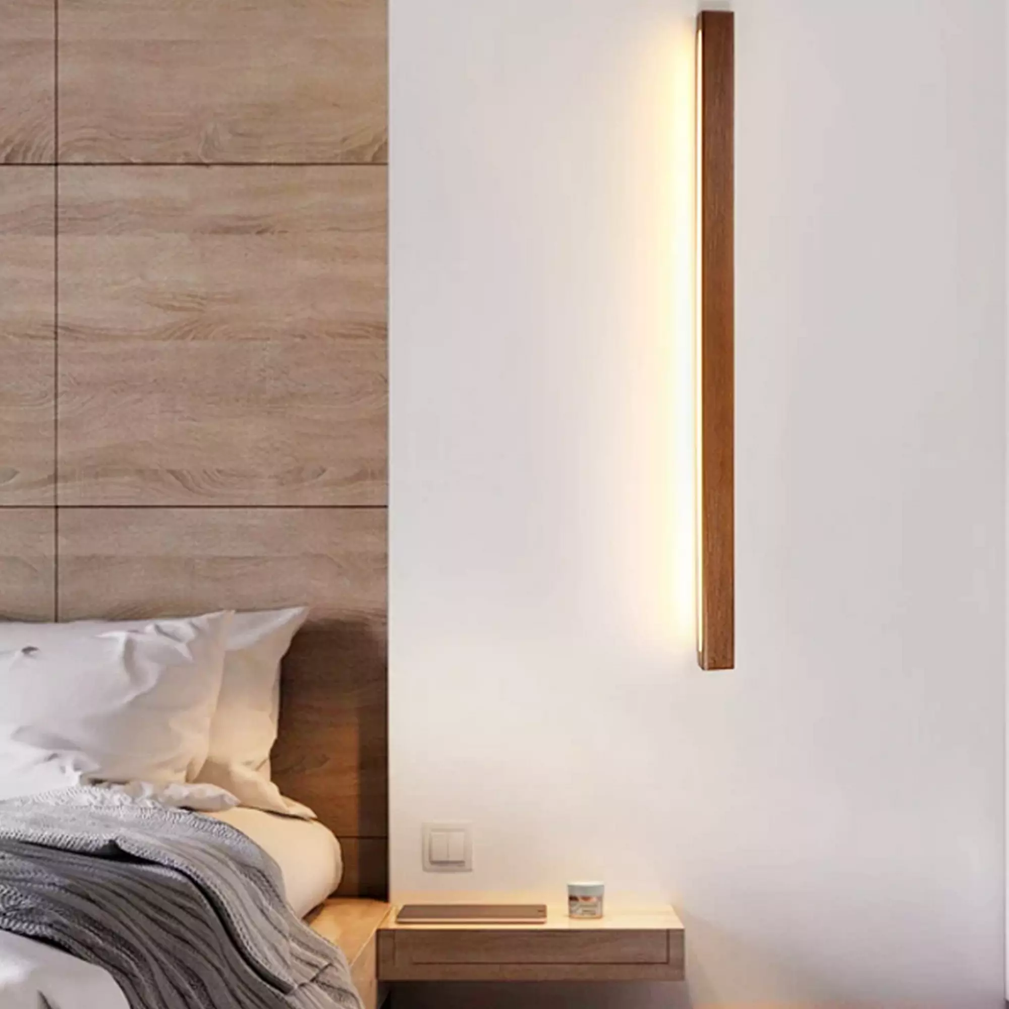 Introducing the Long Rectangle Shape Wooden Wall Lamp, a stunning lighting fixture that will effortlessly elevate your design aesthetic. Crafted with exquisite attention to detail, this lamp combines sleek lines and natural materials to create a harmonious blend of modern elegance and rustic charm.