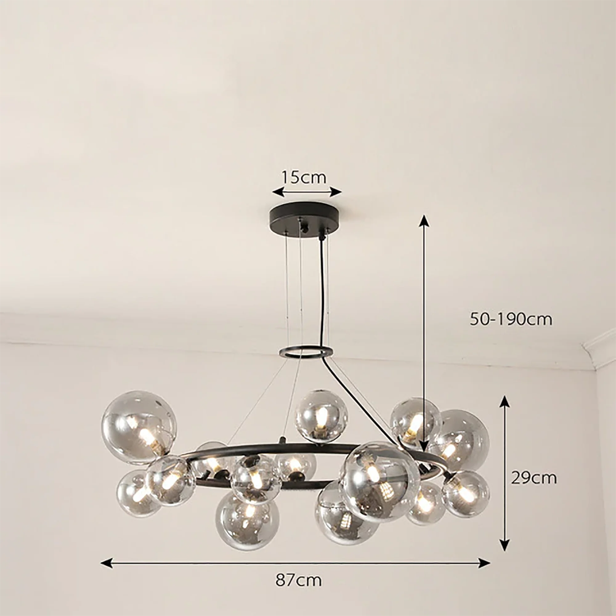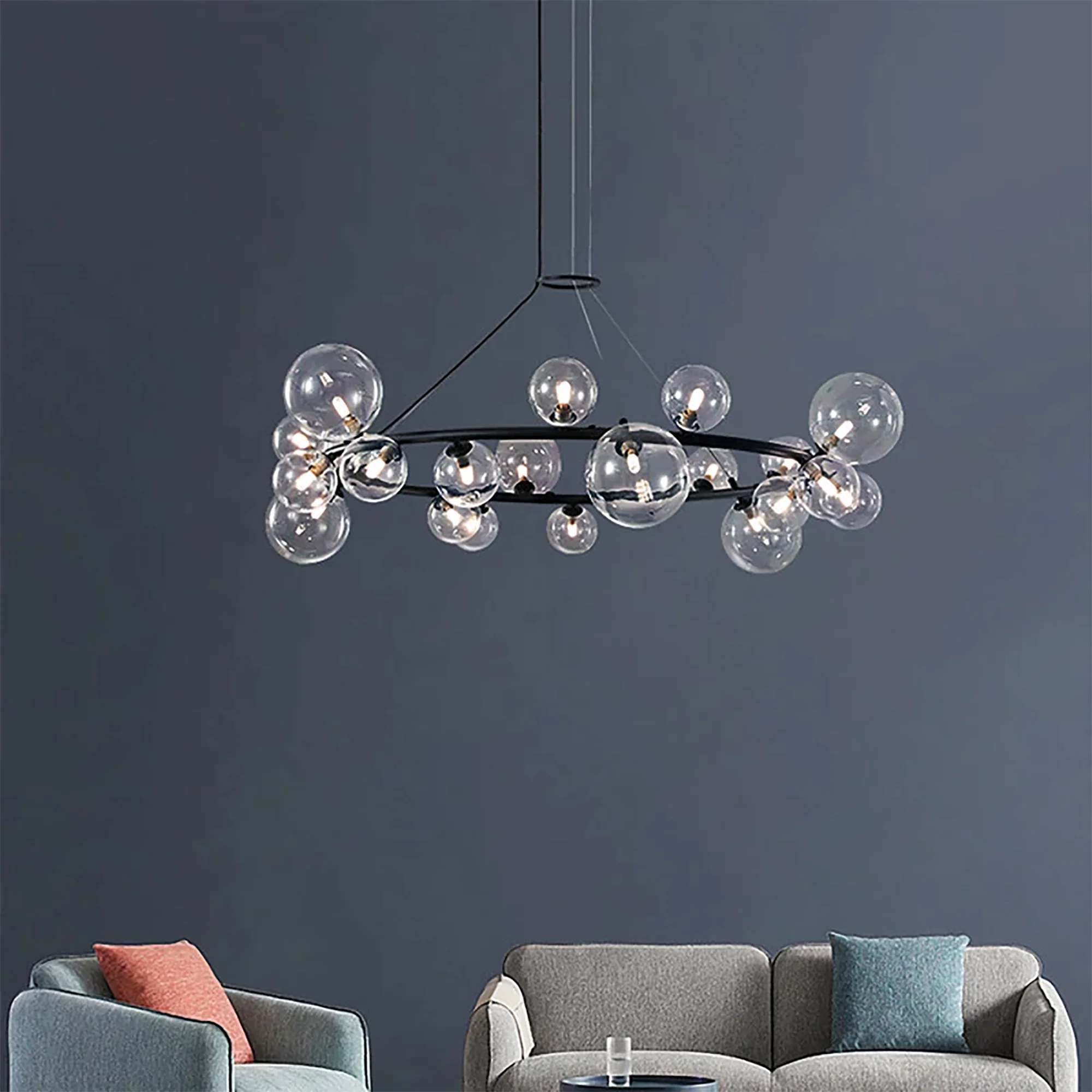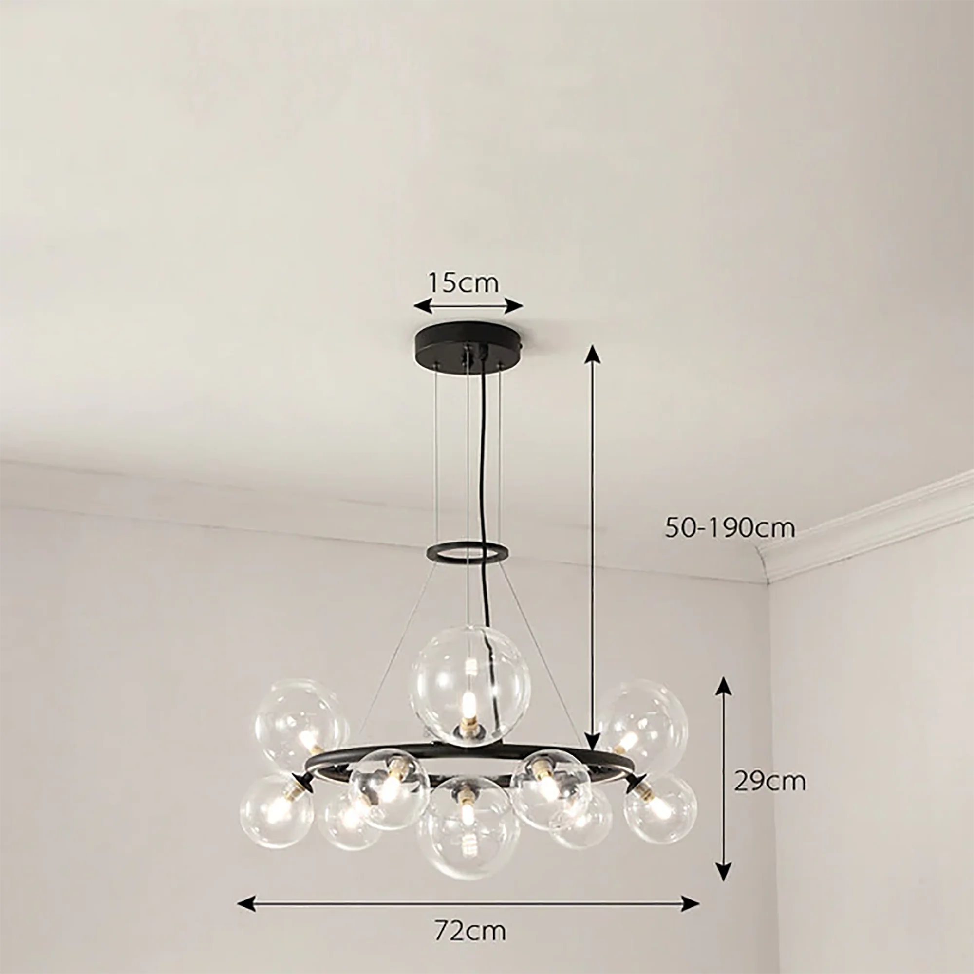With its radiant glow, this chandelier creates an ambiance of sheer sophistication, transforming your space into a haven of artistic brilliance. Let the minimalist allure of the Glass Ball Chandelier elevate your design, providing a timeless and captivating focal point that leaves a lasting impression on all who experience its allure. Illuminate your world with this perfect fusion of artistry and functionality, and bask in the glow of elevated design.