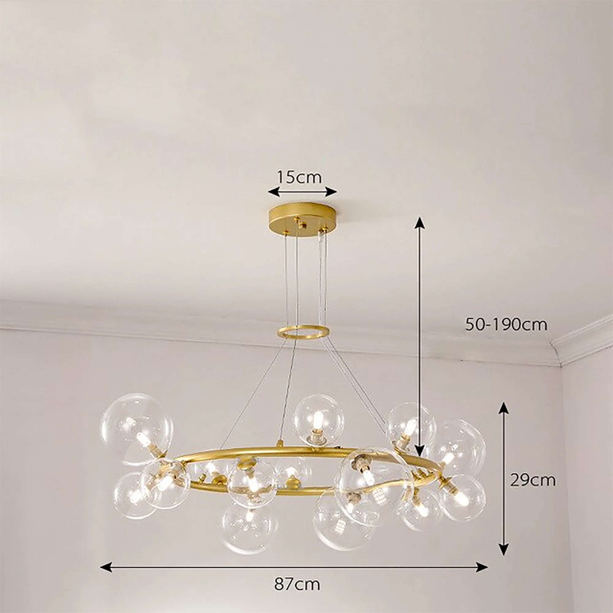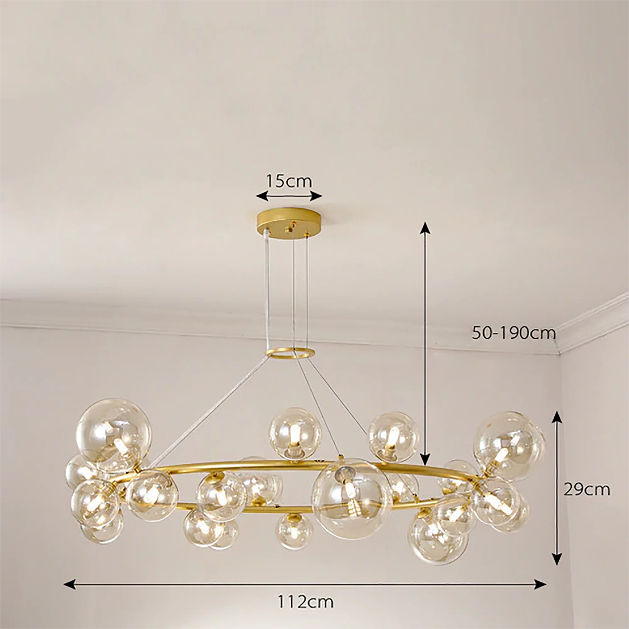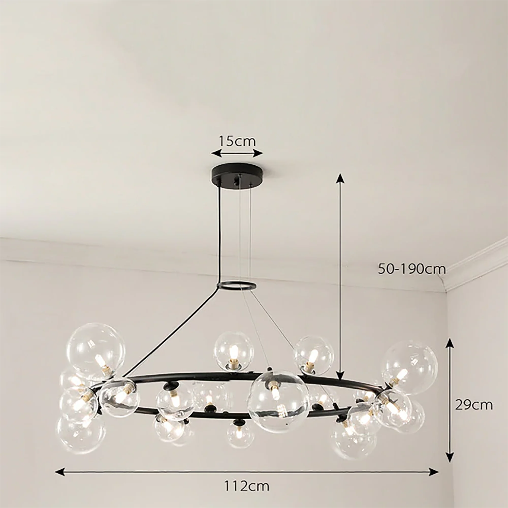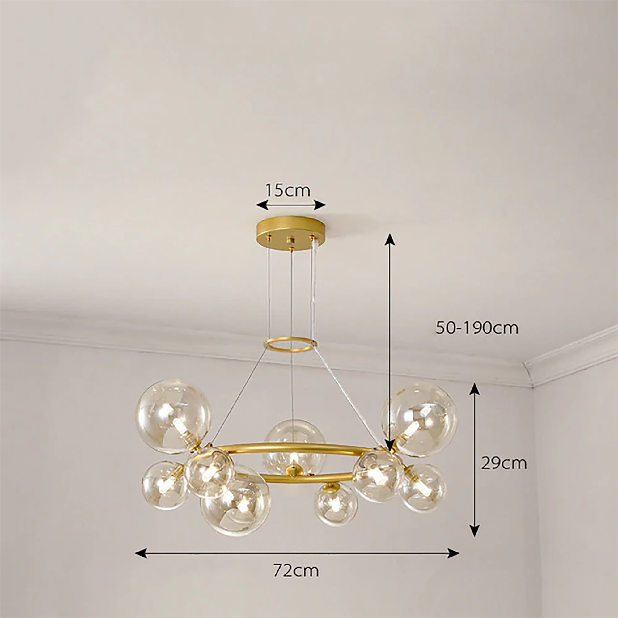 With its radiant glow, this chandelier creates an ambiance of sheer sophistication, transforming your space into a haven of artistic brilliance. Let the minimalist allure of the Glass Ball Chandelier elevate your design, providing a timeless and captivating focal point that leaves a lasting impression on all who experience its allure. Illuminate your world with this perfect fusion of artistry and functionality, and bask in the glow of elevated design.