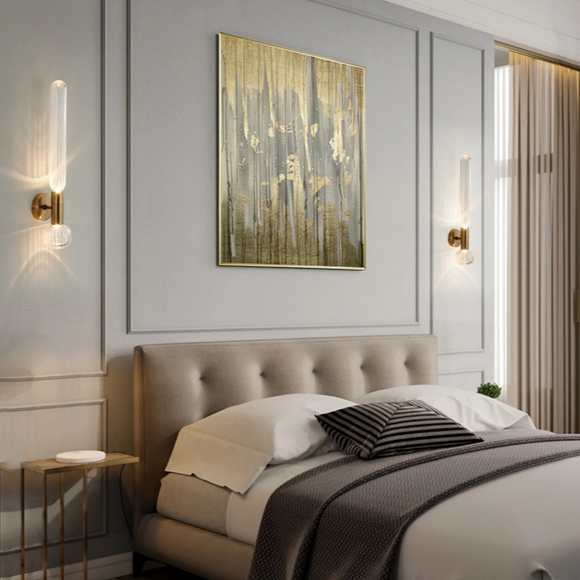 The transparent construction of this wall lamp creates a stunning visual effect, allowing light to diffuse through the shade and cast captivating shadows on the surrounding walls. The result is a truly mesmerizing display that adds depth and ambiance to your room.